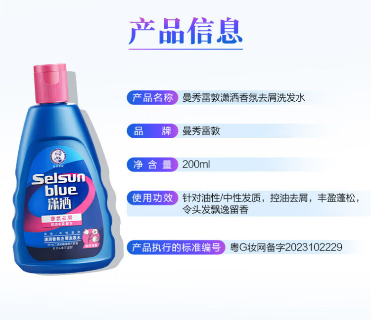 SELSUN Mentholatum Lily of the Valley Fragrance Anti-Dandruff Shampoo 200ml Effectively anti-itch, anti-dandruff, oil control and fluffy hair roots