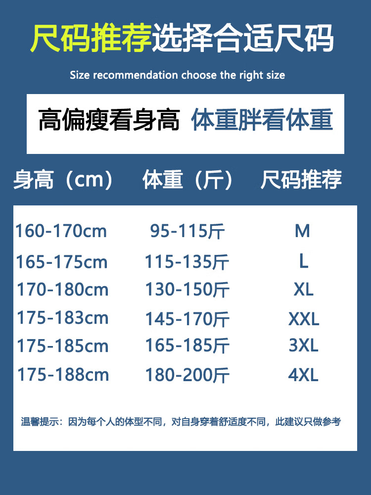 China (cm) 165 / 88-90 170 / 96-98 175 / 108-110 180 / 118-122 185 / 126-130