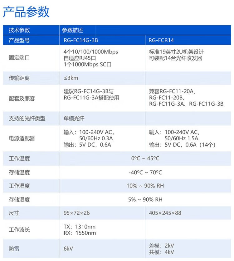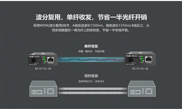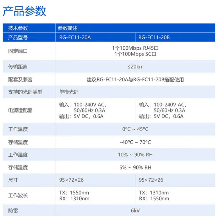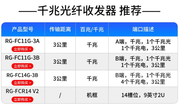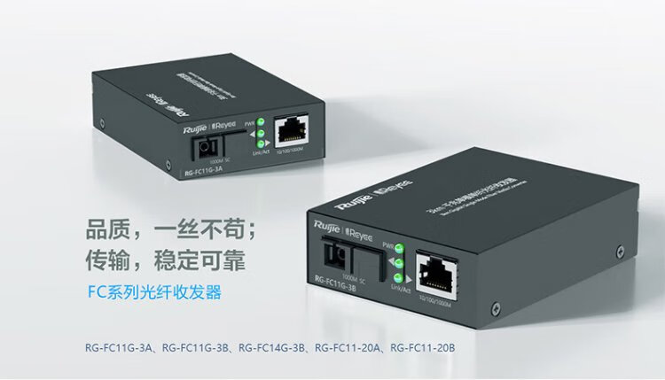 Ruijie Gigabit optical fiber transceiver combination A+B ends RG-FC11G-3A+RG-FC11G-3B single-mode single fiber 3 kilometers AB end SC interface plug and play