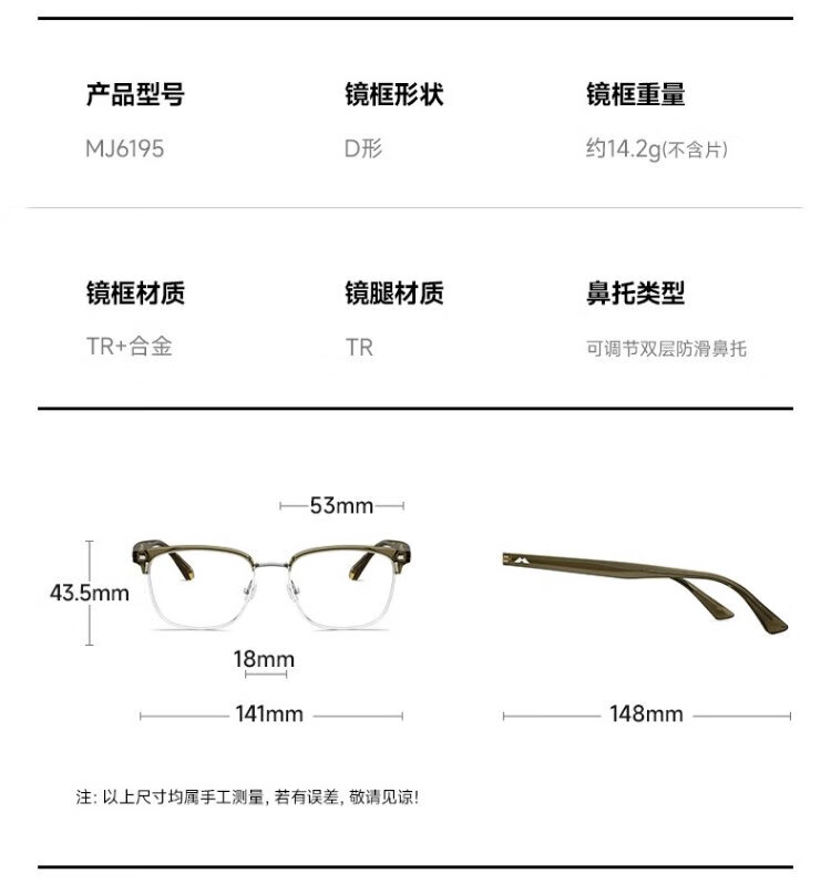 MOLSION glasses Xiao Zhan's same eyebrow line half-frame myopia frame MJ6195