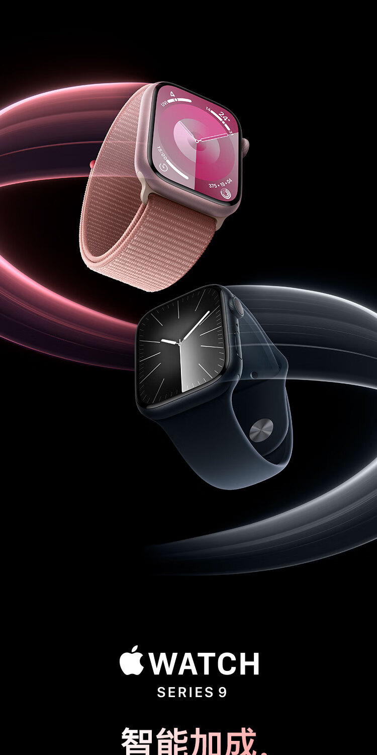 Apple Watch Series 9 Smart Watch GPS Model 45mm Pink Aluminum Case Bright Pink Sports Strap M/L S9 SIP Chip MR9H3CH/A