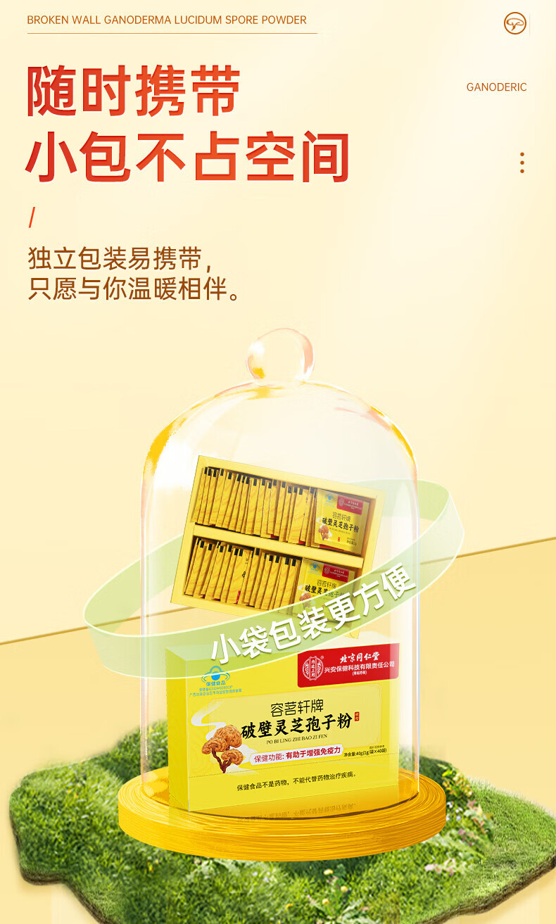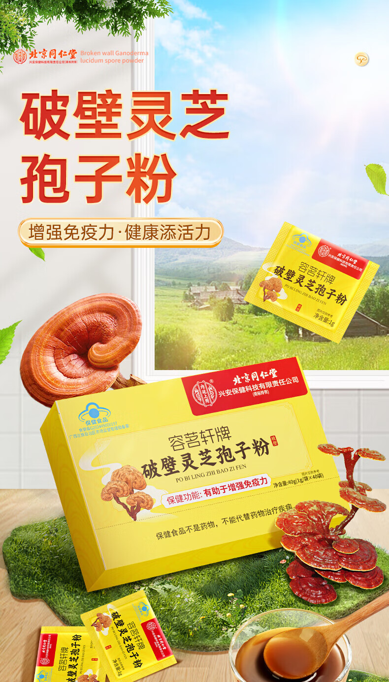 Tongrentang Broken Ganoderma Spore Powder is used in the inner court to enhance immunity, nourishing and health care products, gift box 40g for Mid-Autumn Festival and National Day