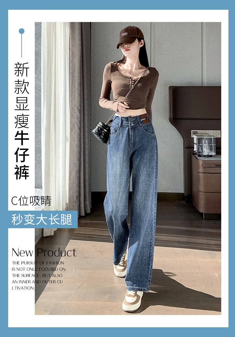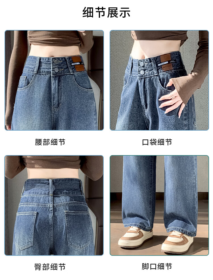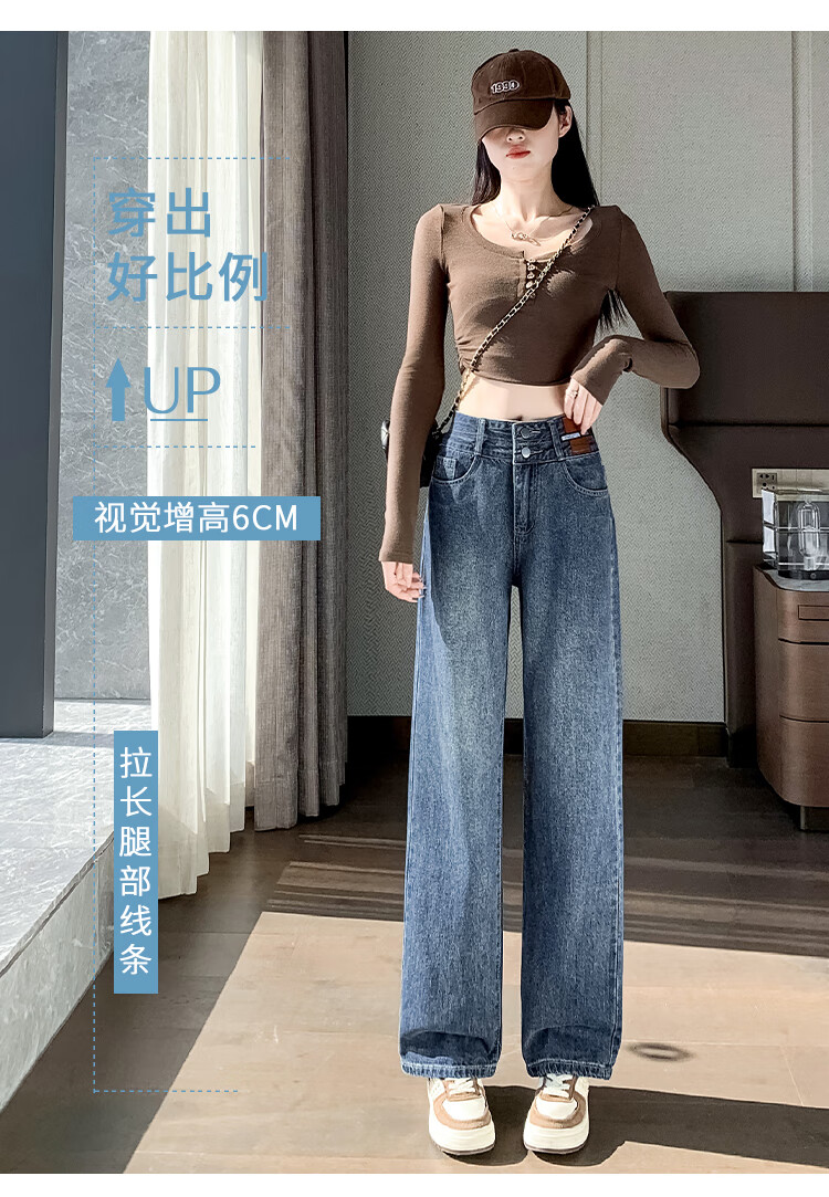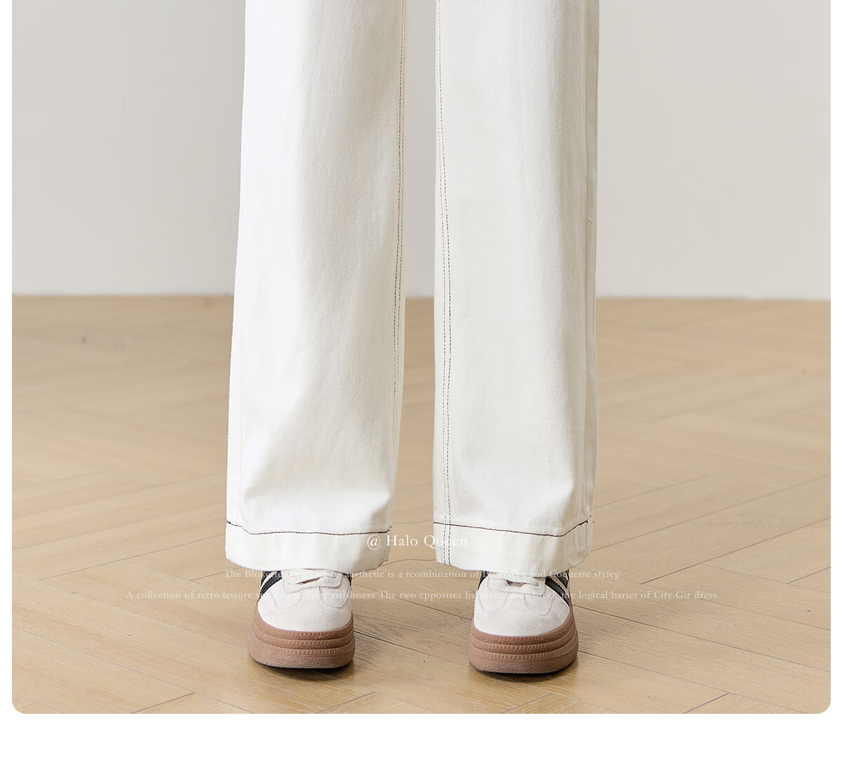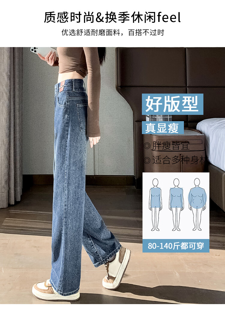 Halo Queen Jeans Women's Spring and Autumn Slim Wide Leg Pants Comfortable Loose Casual Denim Pants H13KN1050