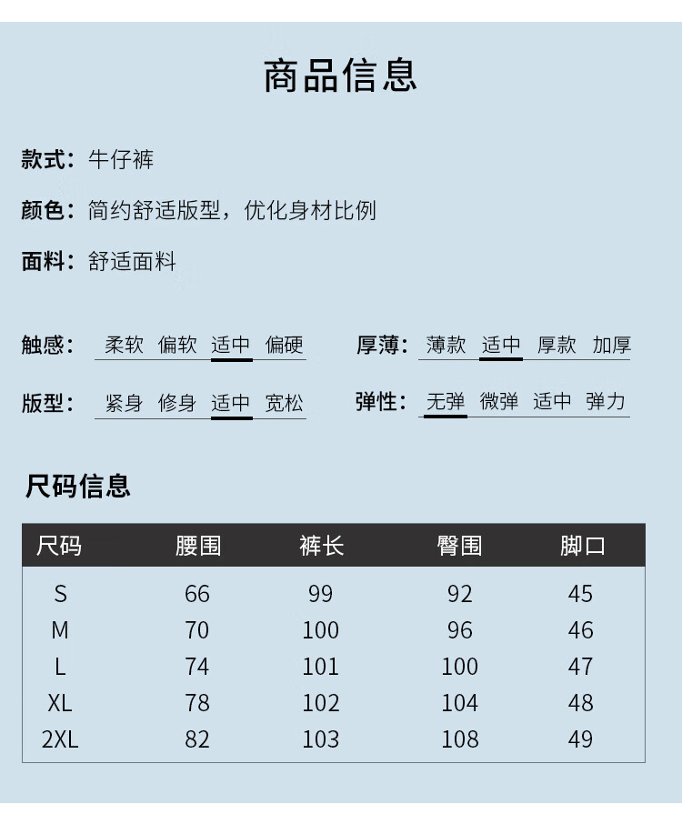Outseam (cm) 99 cm 101.5 cm 104 cm 106.5 cm 109 cm