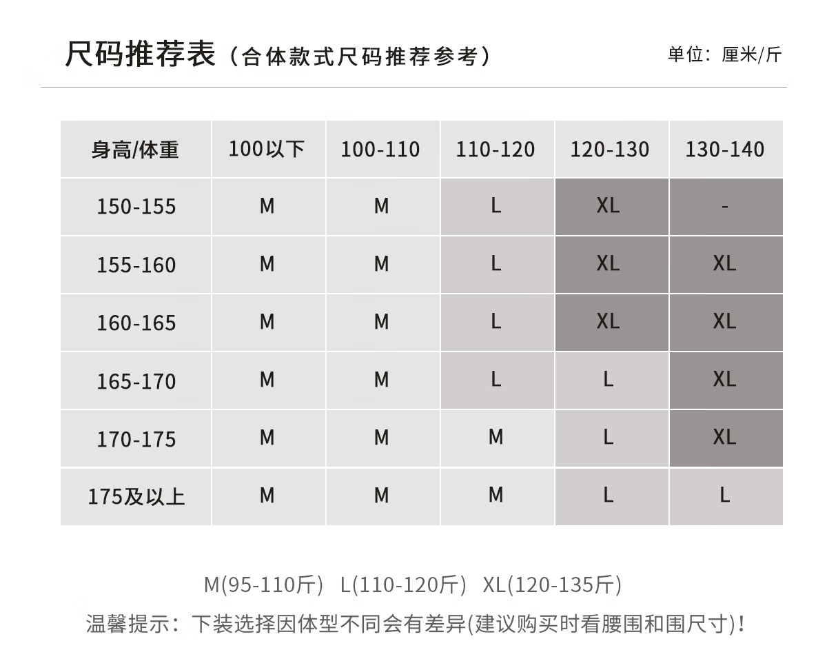 China (cm) 160-165/84-86 165-170 / 88-90 167-172 / 92-96 168-173 / 98-102 170-176 / 106-110