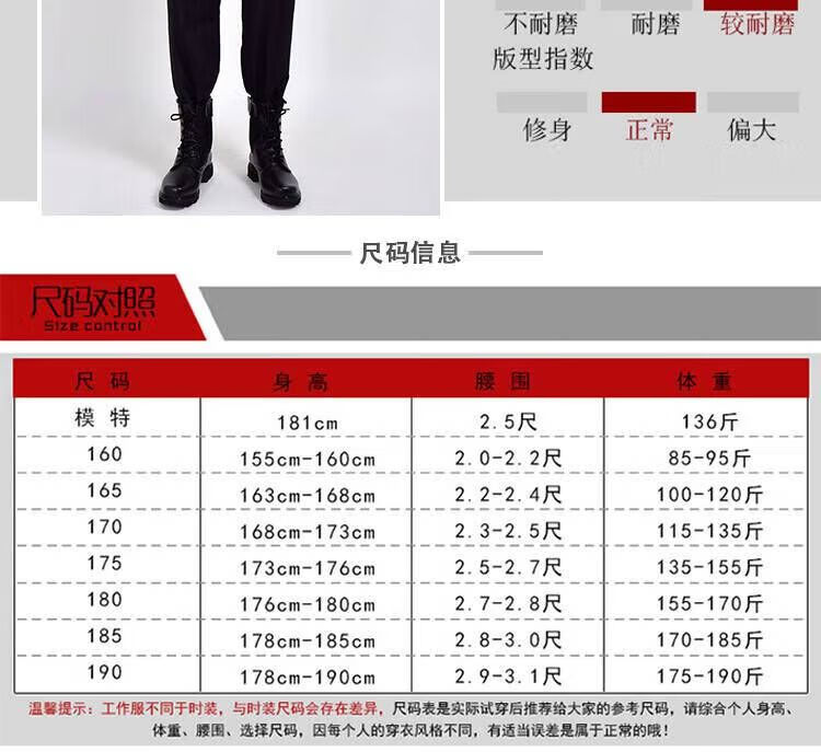 China (cm) 165 / 88-90 170 / 96-98 175 / 108-110 180 / 118-122 185 / 126-130