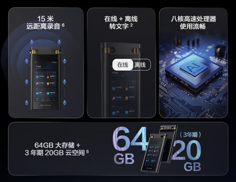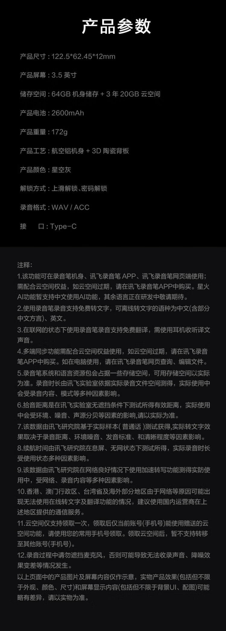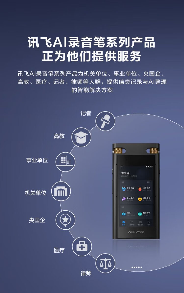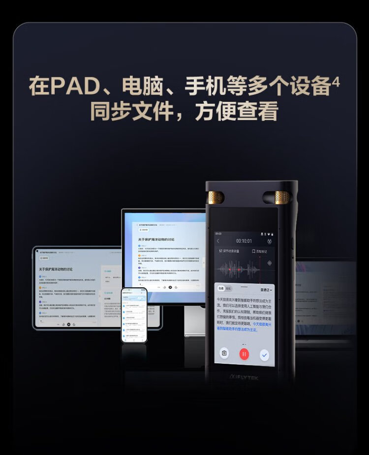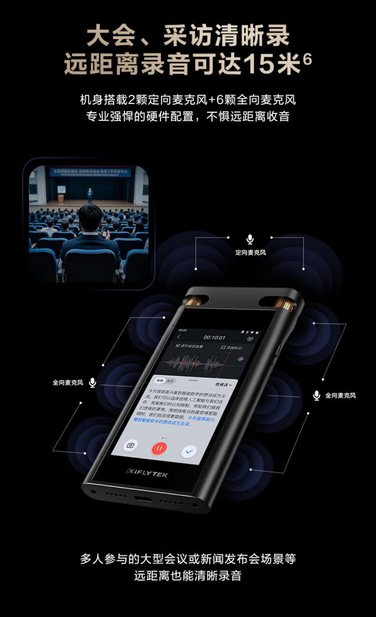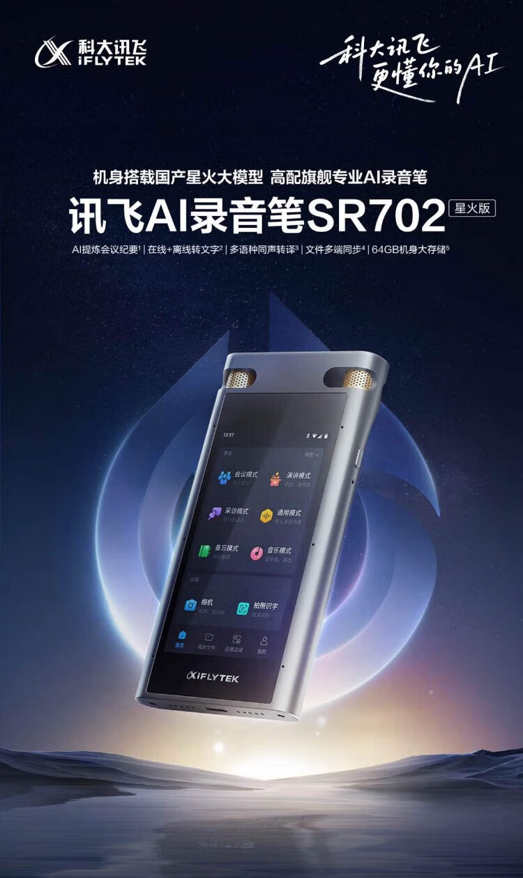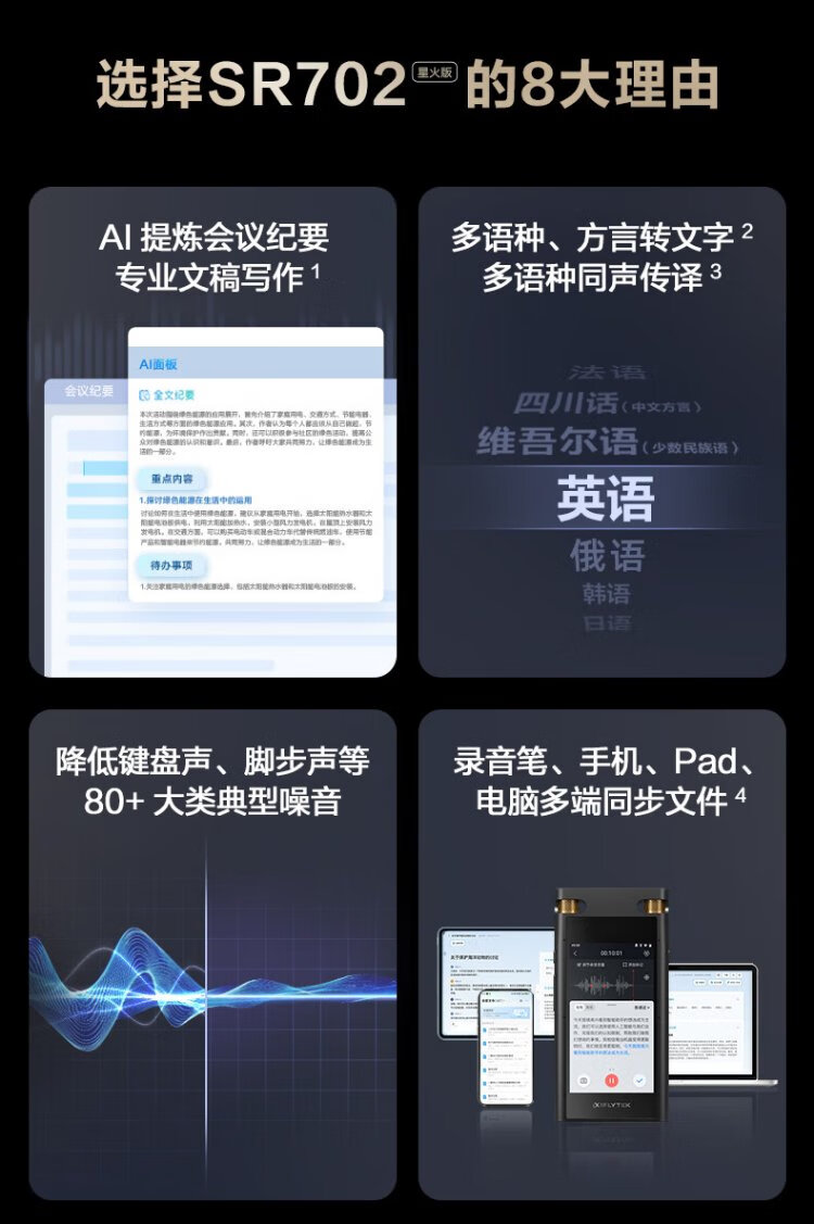 科大讯飞AI录音笔SR702星火版 免费录音转文字 智能降噪录音器 专业录音设备录音机 多语种同声传译