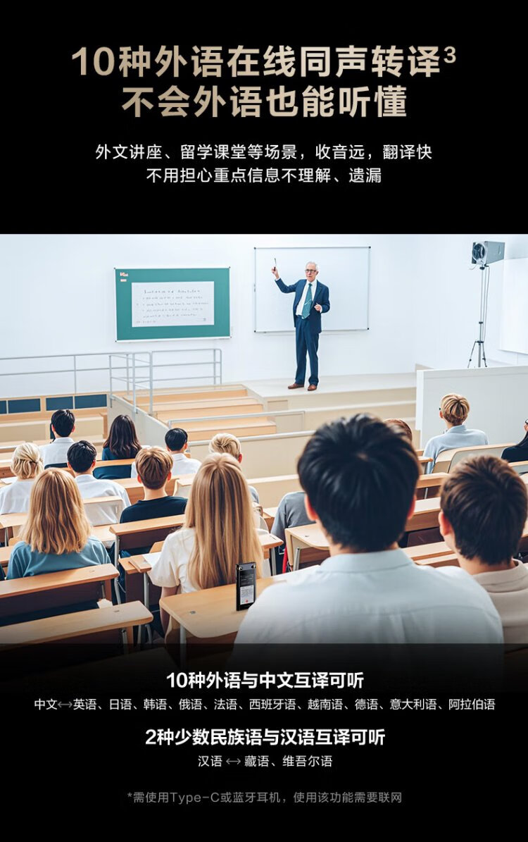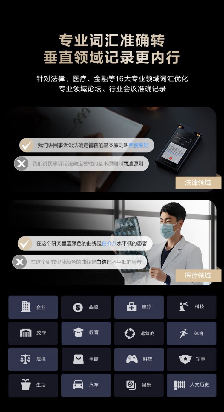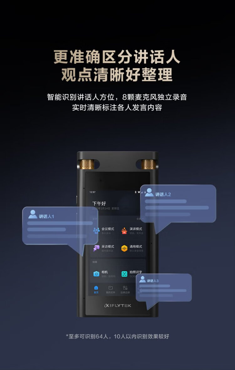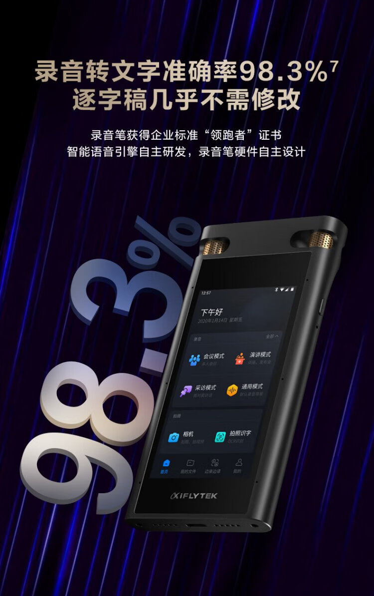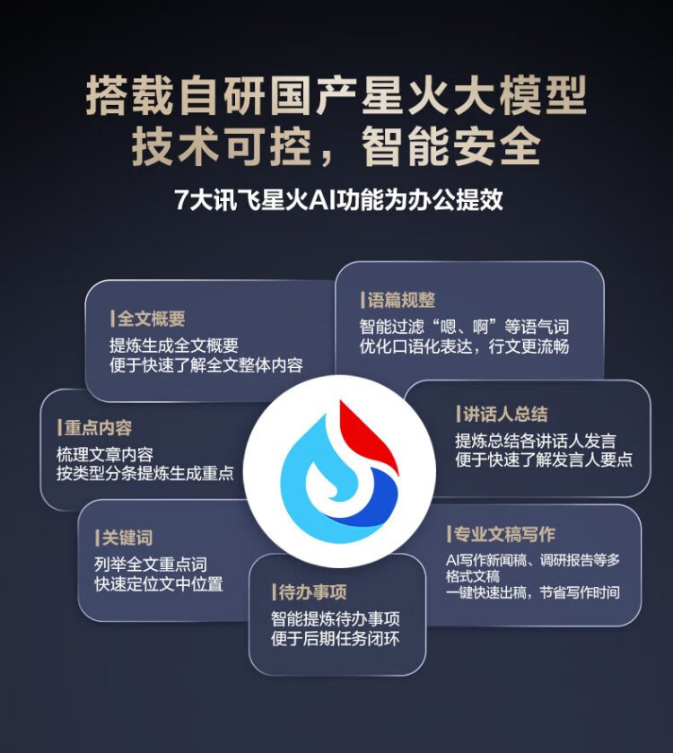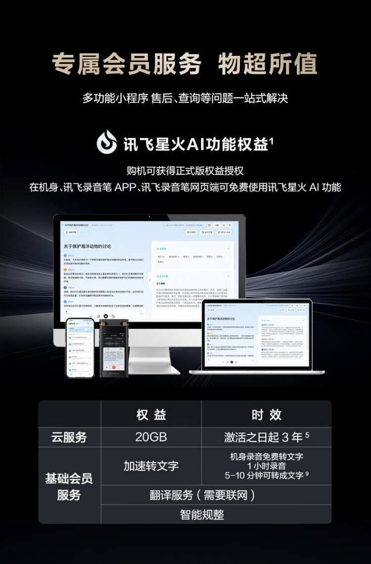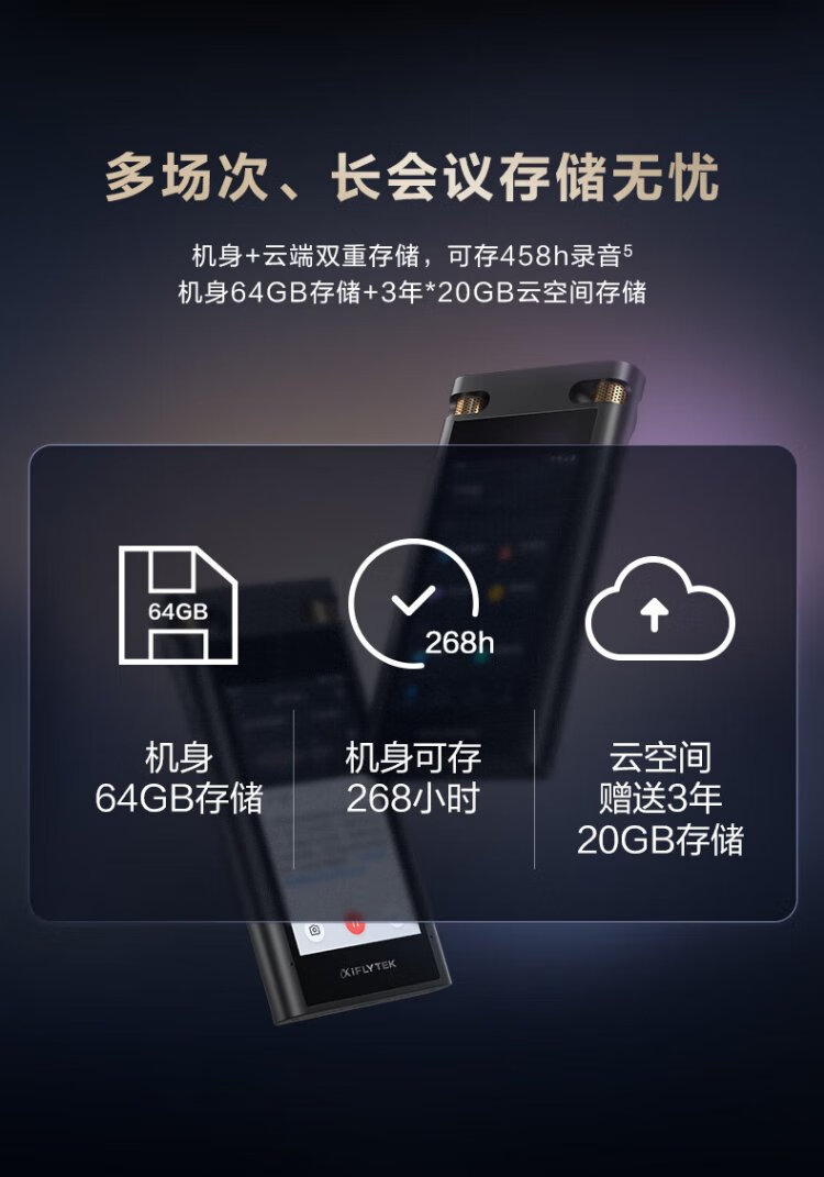 科大讯飞AI录音笔SR702星火版 免费录音转文字 智能降噪录音器 专业录音设备录音机 多语种同声传译