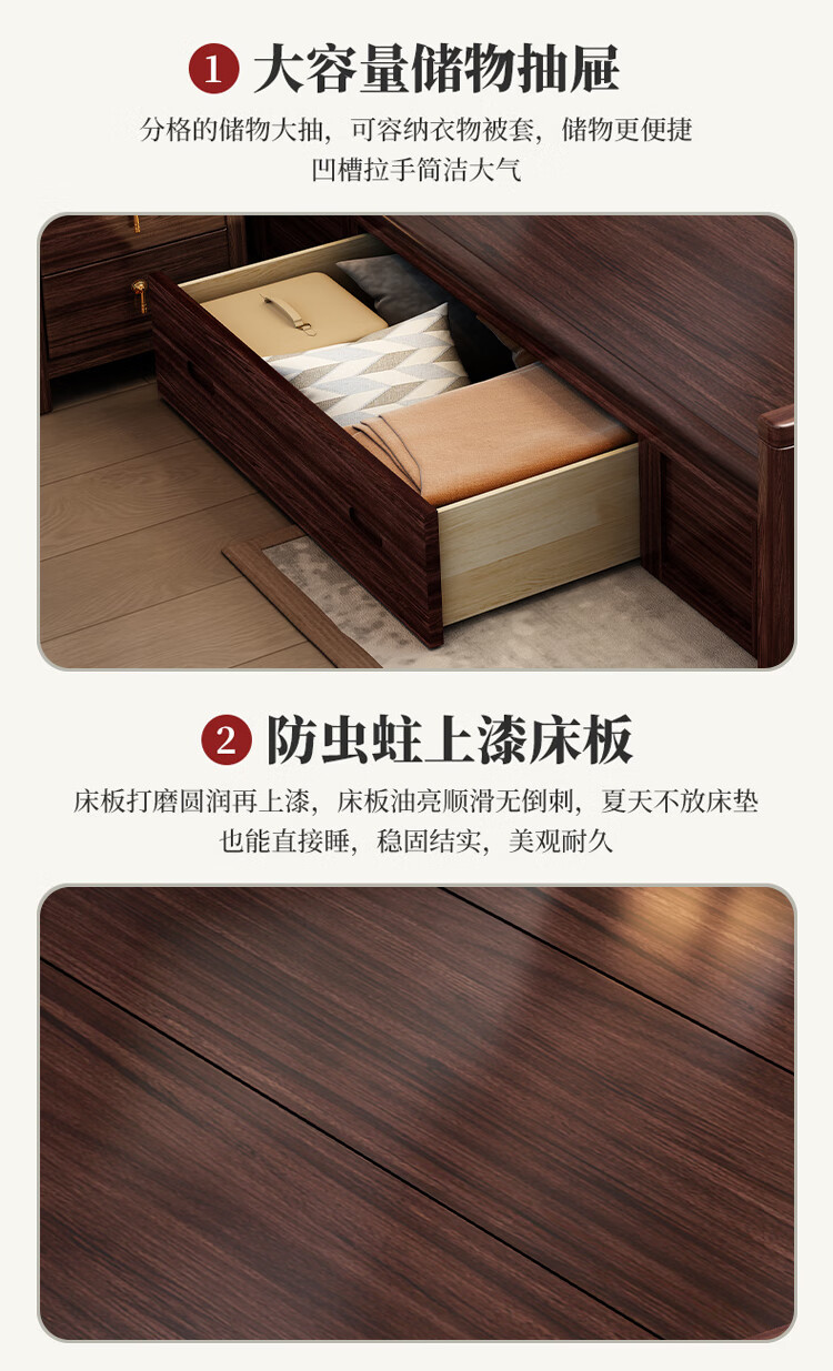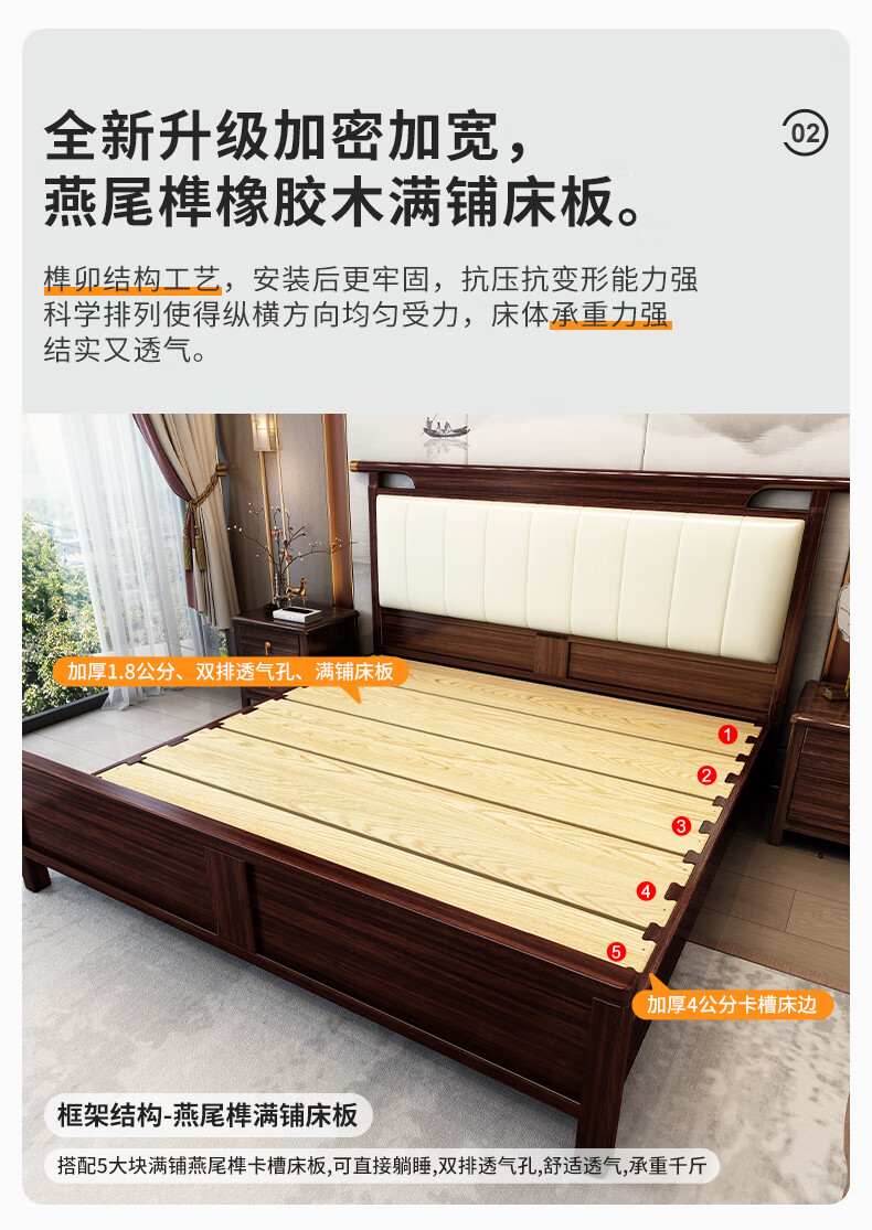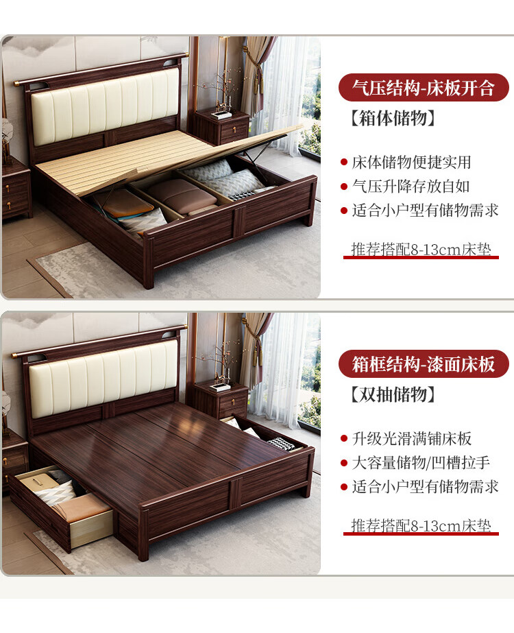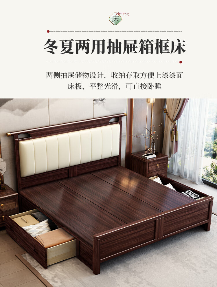 Laishida Chinese style ebony solid wood bed master bedroom 1.8m double high-end light luxury wedding bed YF9904 1.8 bed