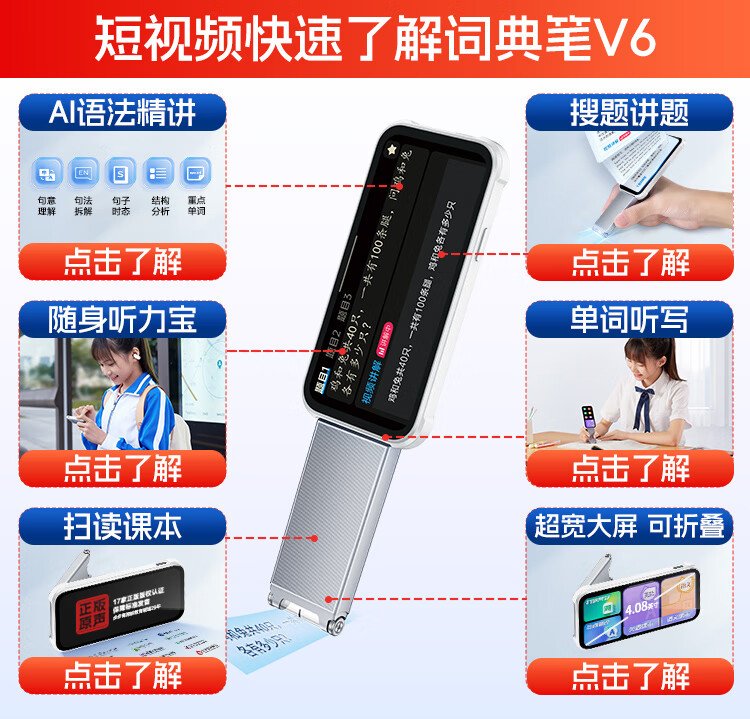 BBK's Folding Dictionary Pen V6 4.08-inch Large Screen New Curriculum Standard English Reading Pen Scanning Pen Translation Pen Learning Machine Textbook Scanning Portable Learning Machine
