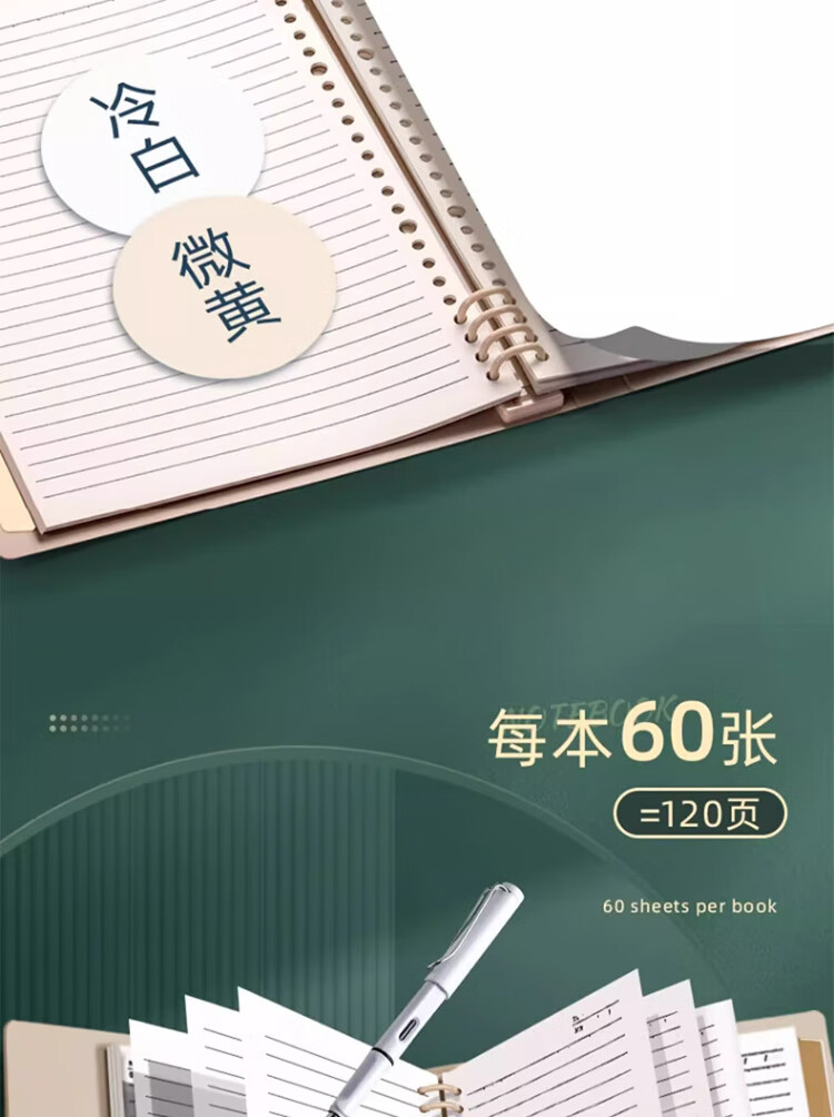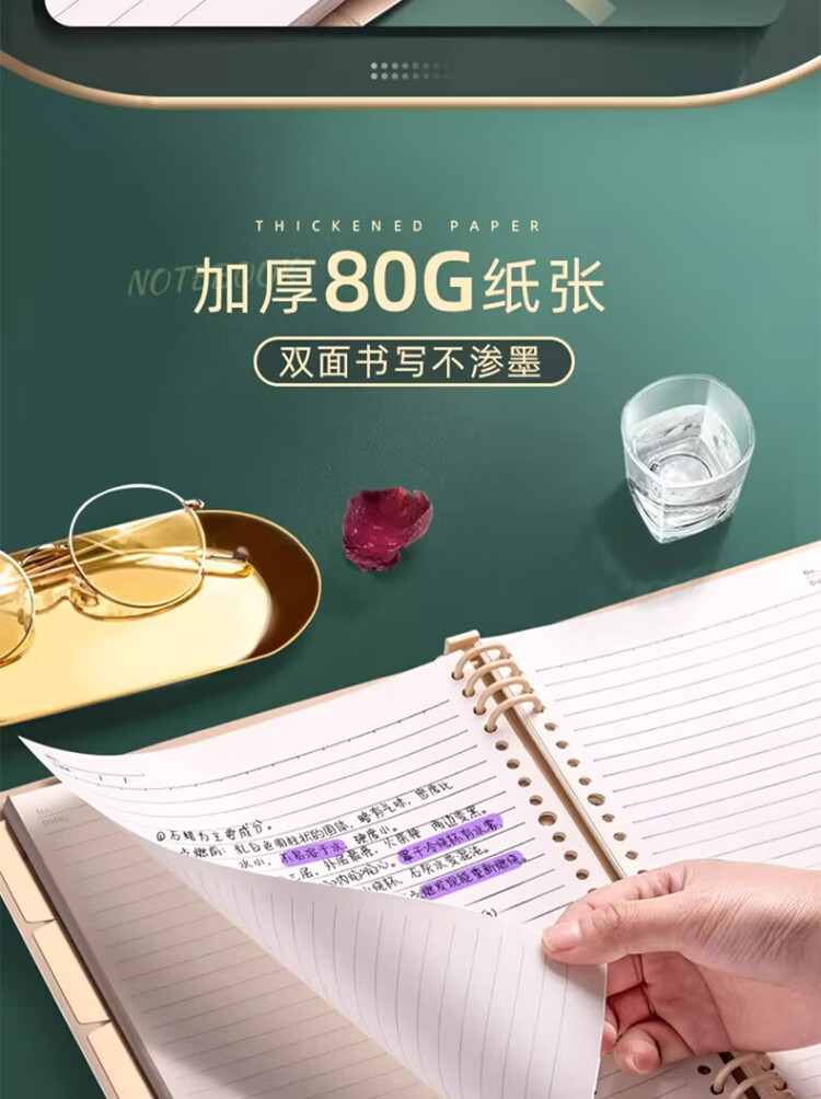 三木(SUNWOOD)A5/60张120页不硌手活页本 复古外壳可拆卸8孔横线笔记本 附索引页 考研错题作业本 棕黑 1389