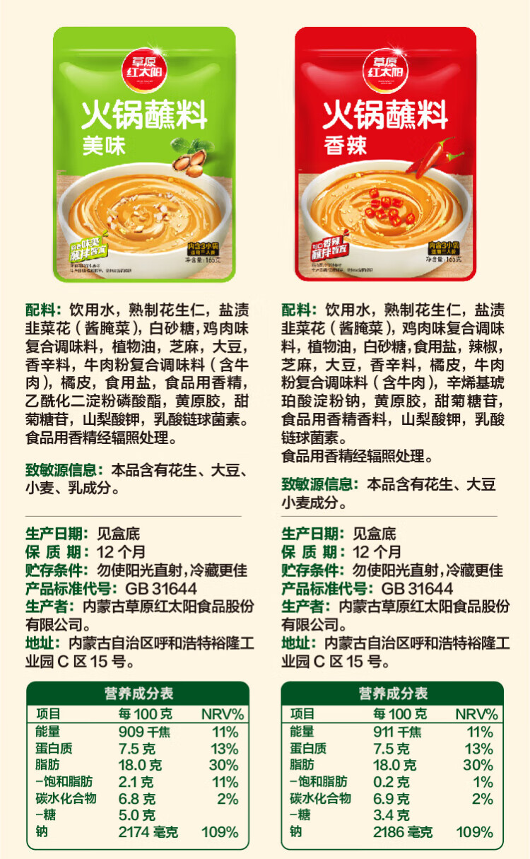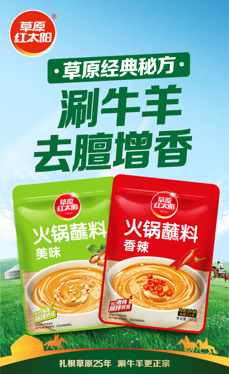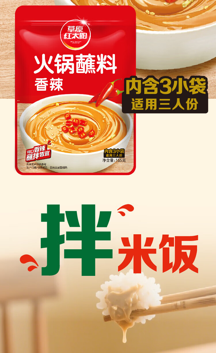 Prairie Red Sun Hot Pot-Dip in großen Mengen erhältlich (Originalgeschmack 165 g*3 + würziger Geschmack 165 g*2), Kombination 825 g Sesamsauce