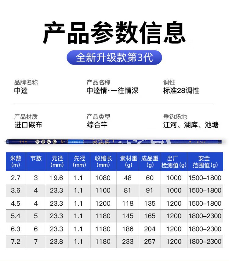 Zhongkui Zhongkui Yinshentai fishing rod ultra-light and ultra-hard 28-tone carbon composite rod 4.5m