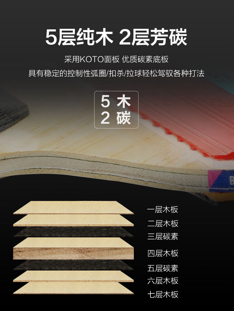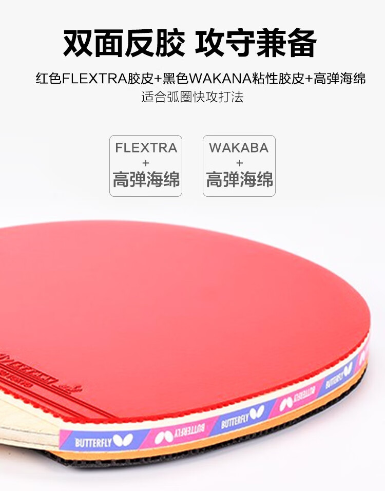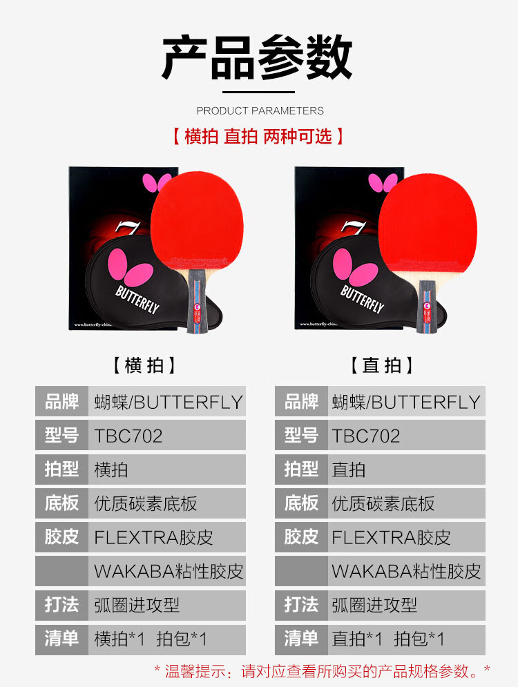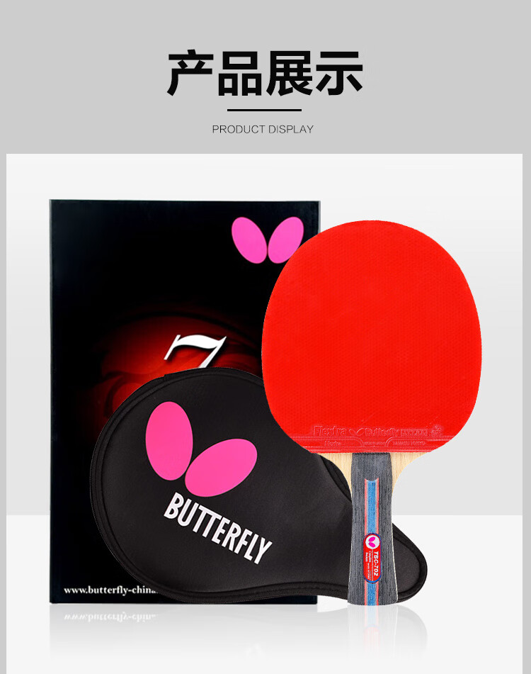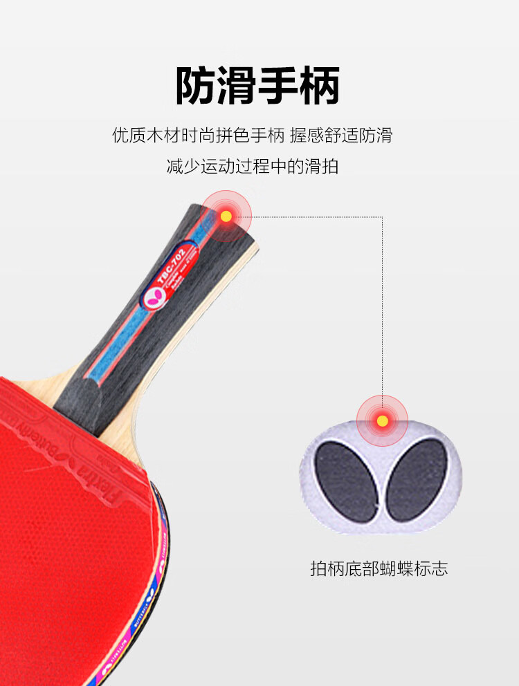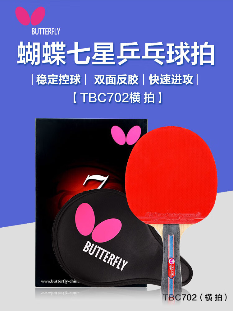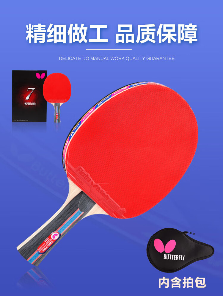 蝴蝶7星乒乓球拍【双面反胶】碳素底板专业级比赛拍子702横拍 含拍套