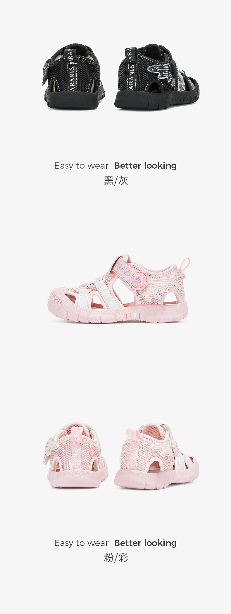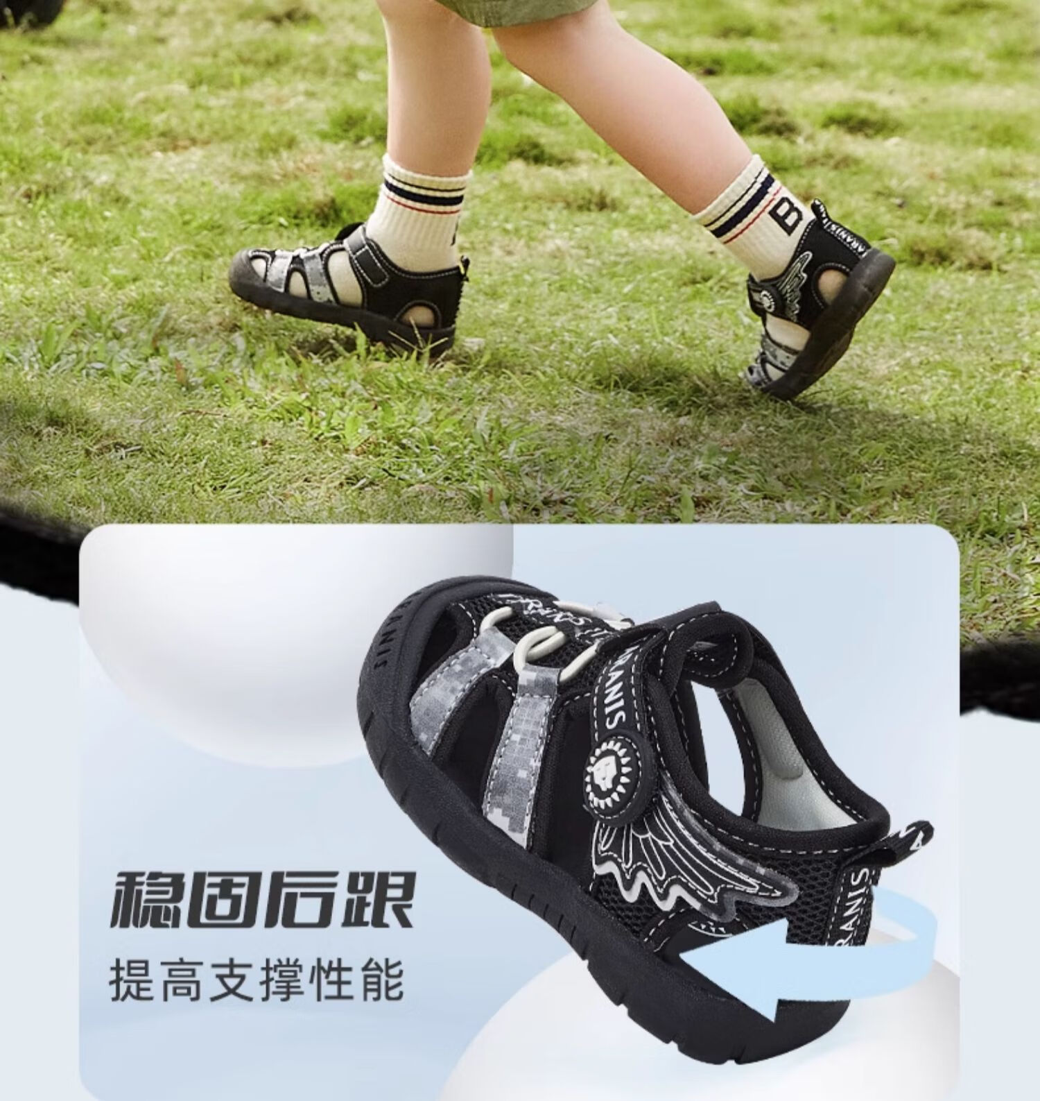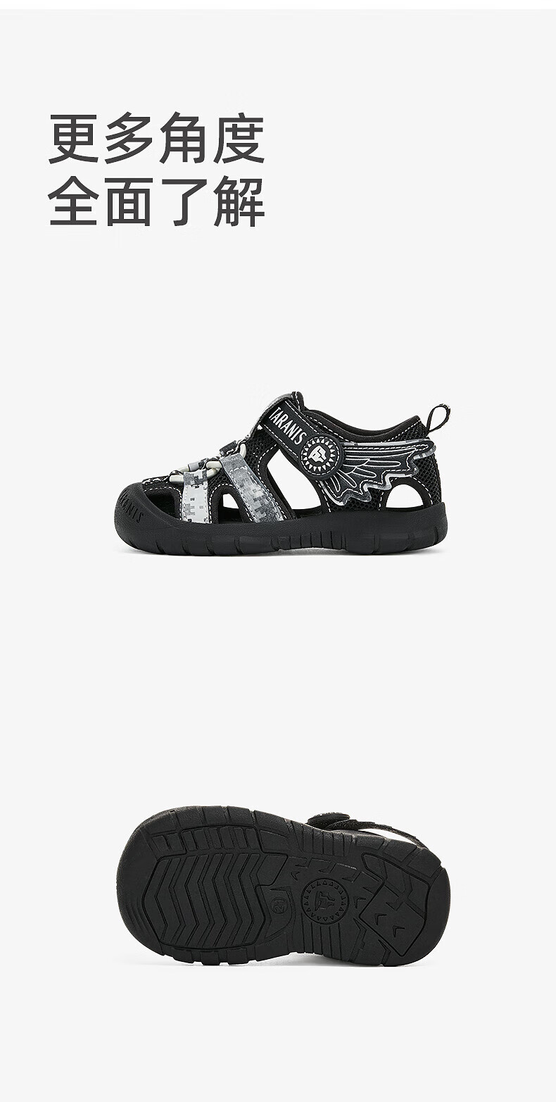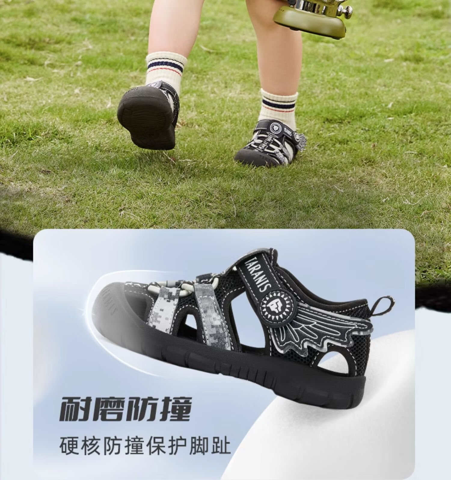 Terranis summer children's sandals for boys and girls, toe-toe toddler shoes, baby outdoor beach shoes, black/grey size 22