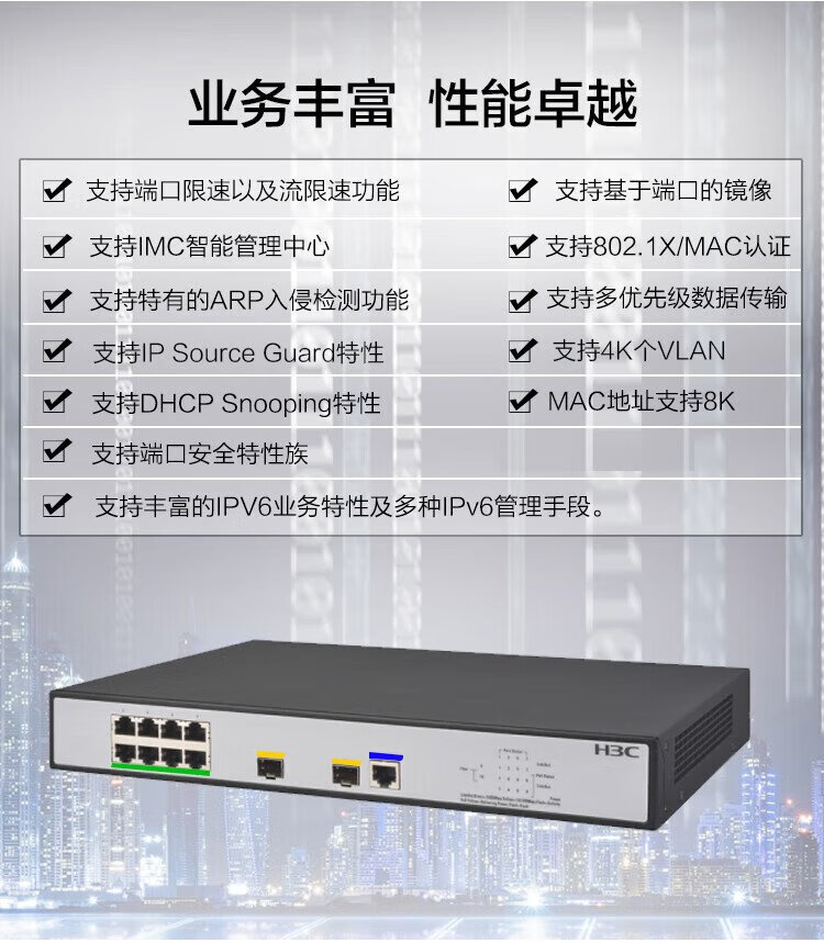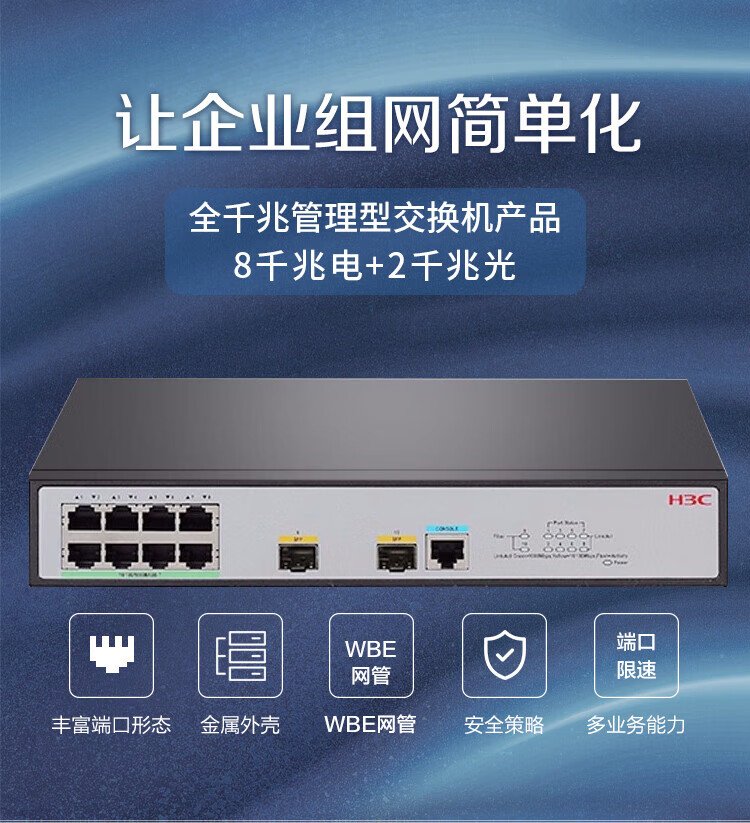New H3C S5008PV5-EI-H1 8-port Gigabit electrical + 2 Gigabit fiber-optic port Layer 2 WEB network managed enterprise-class network switch