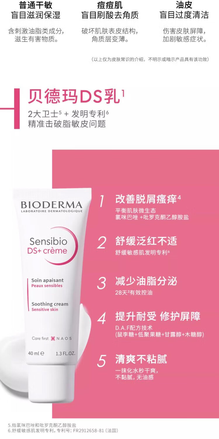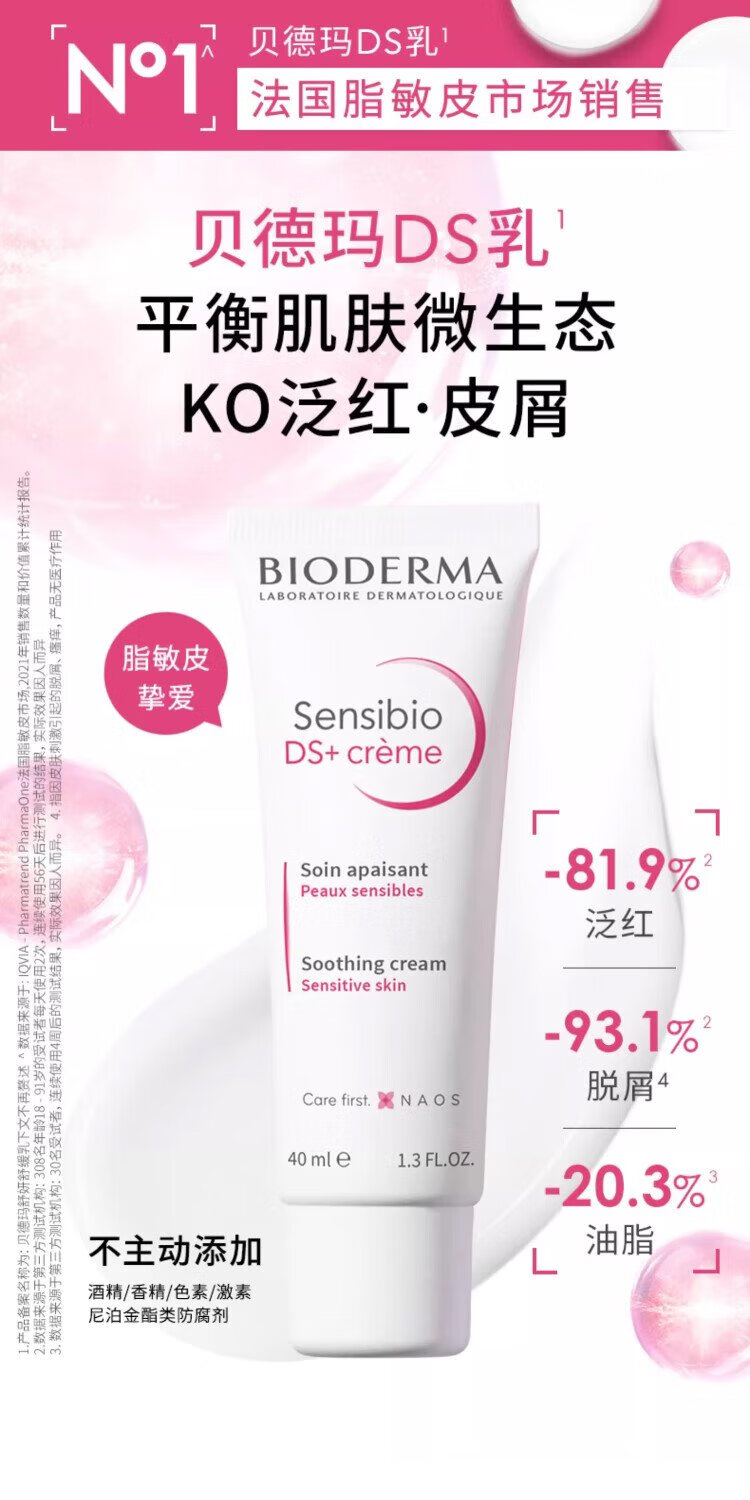 BIODERMA DS Milk Soothing Soothing Moisturizing Cream for Oily Skin Gift 40ml*2