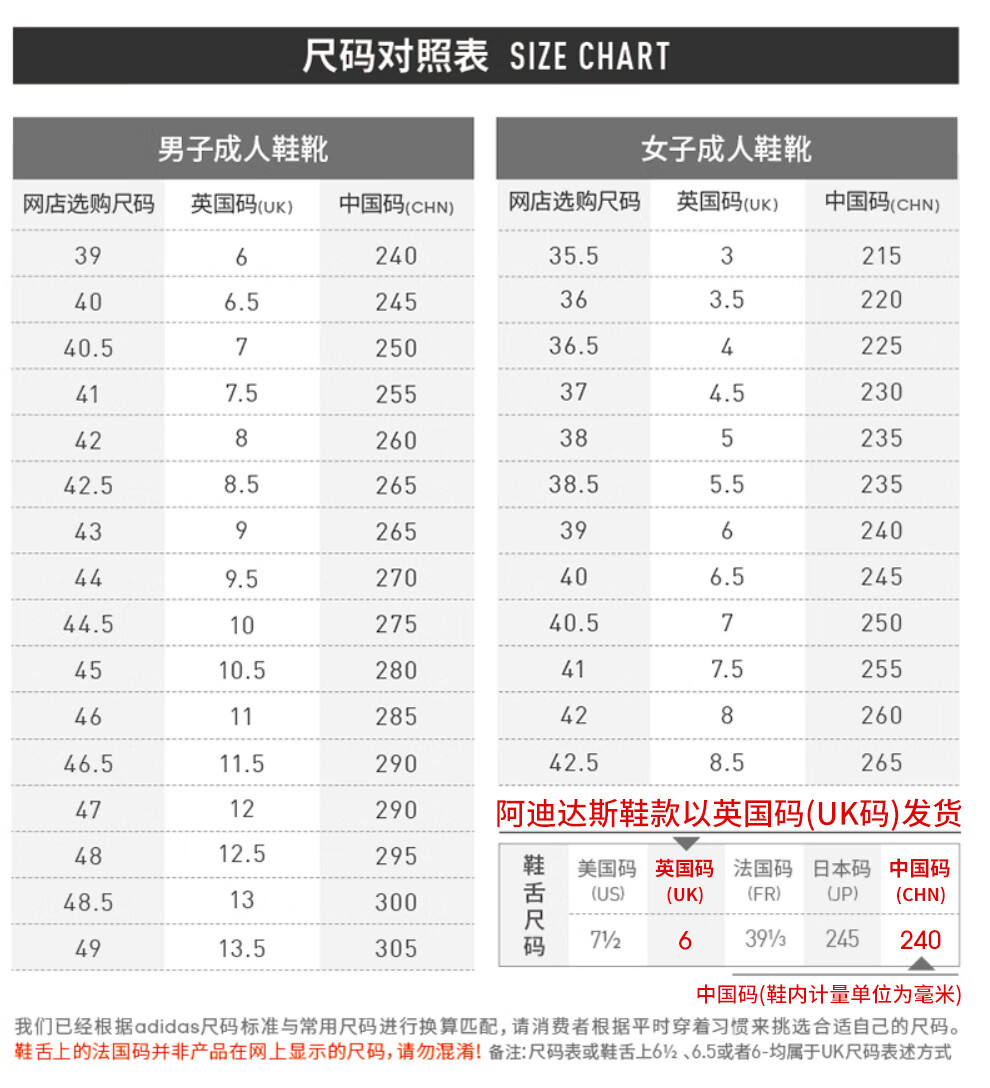 China (cm) 36 - 37 38 - 39 40 - 42 43 - 44 45 - 47