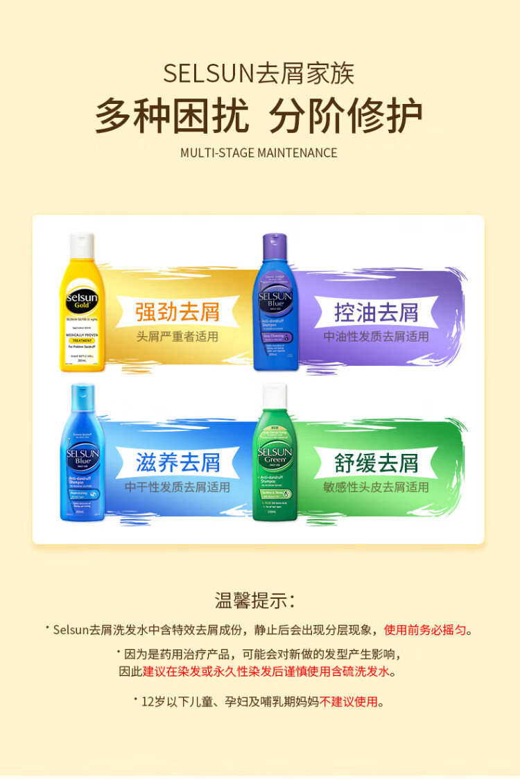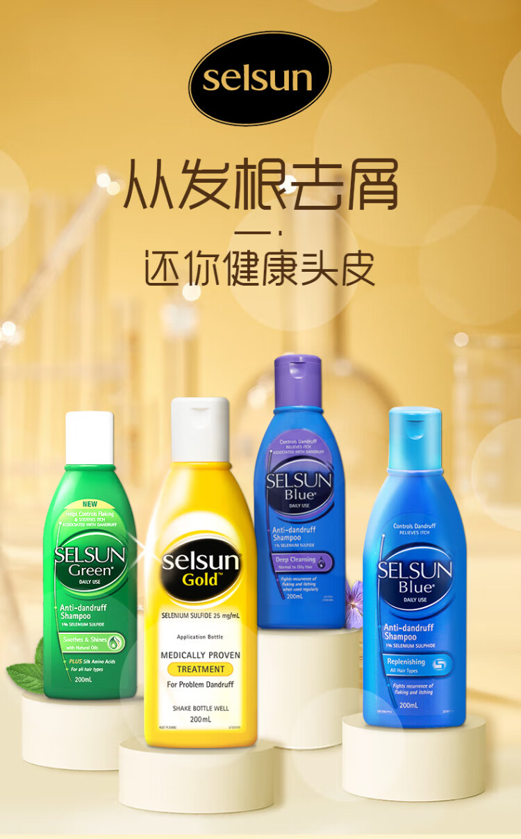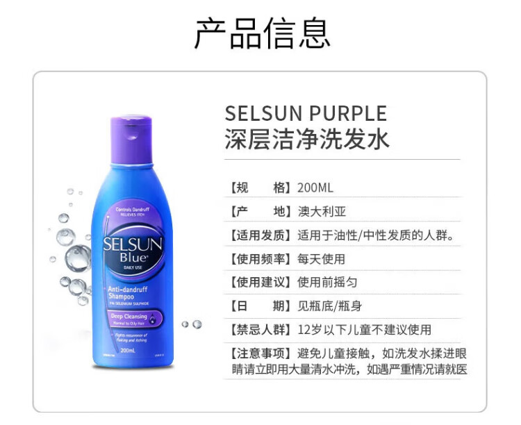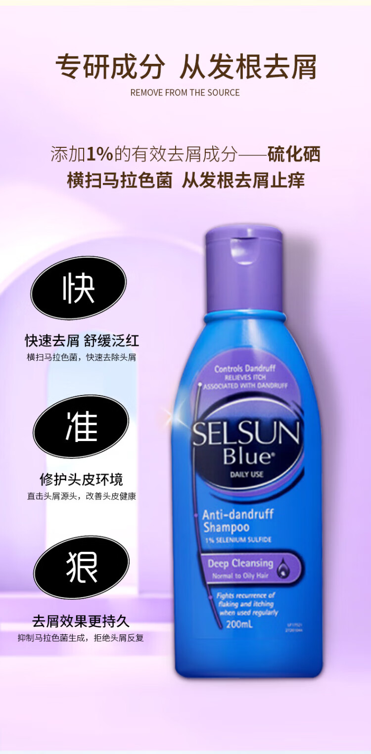 SELSUN Purple Bottle 1% Selenium Disulfide Shampoo 200ml*3 Anti-dandruff Oil Control Anti-Itching Deep Cleansing Shampoo Cream for Men and Women