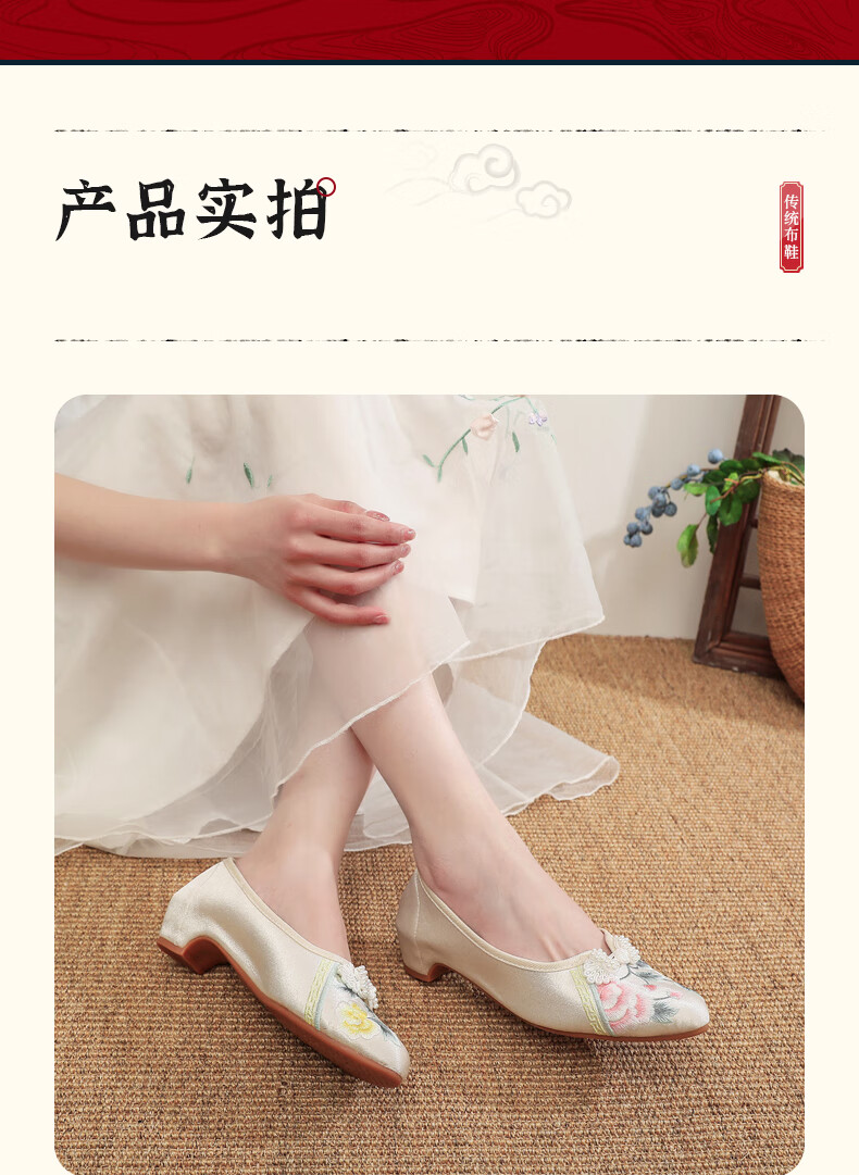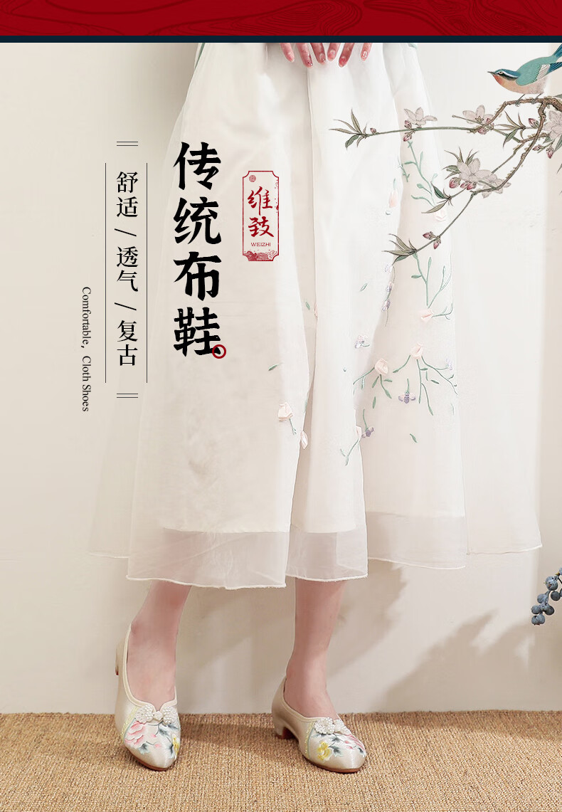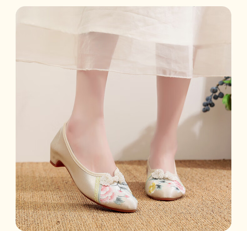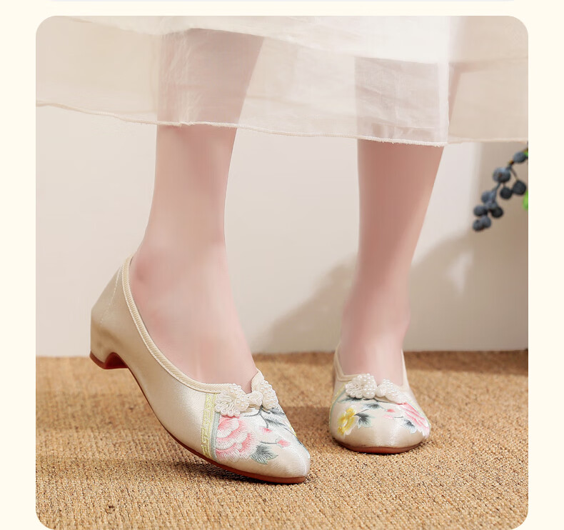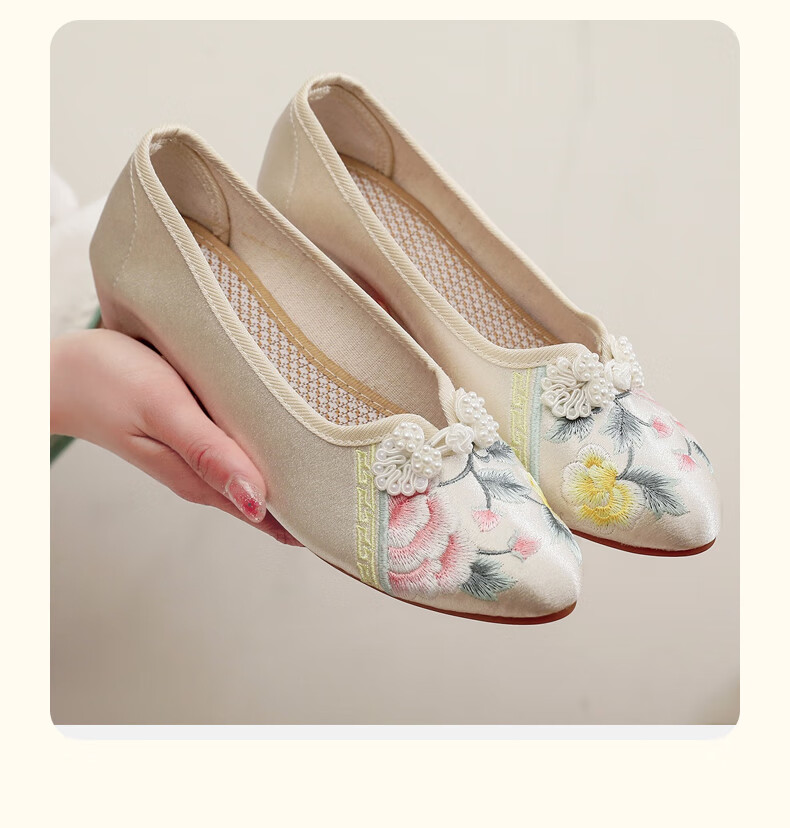 Weizhi old Beijing cloth shoes pointed toe fashion embroidered shoes versatile dance shoes cheongsam shoes Hanfu shoes WZ1047 beige