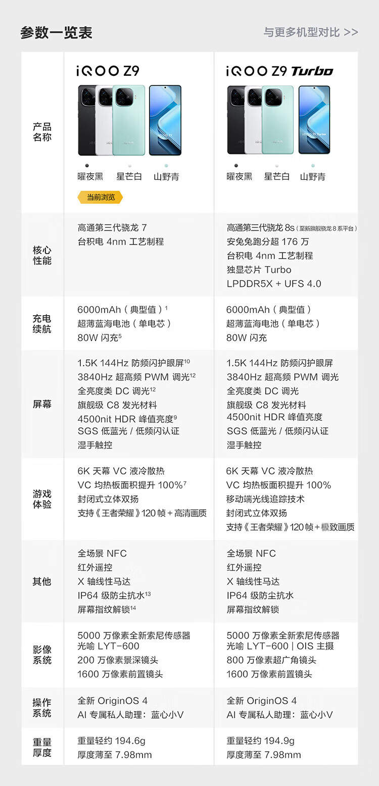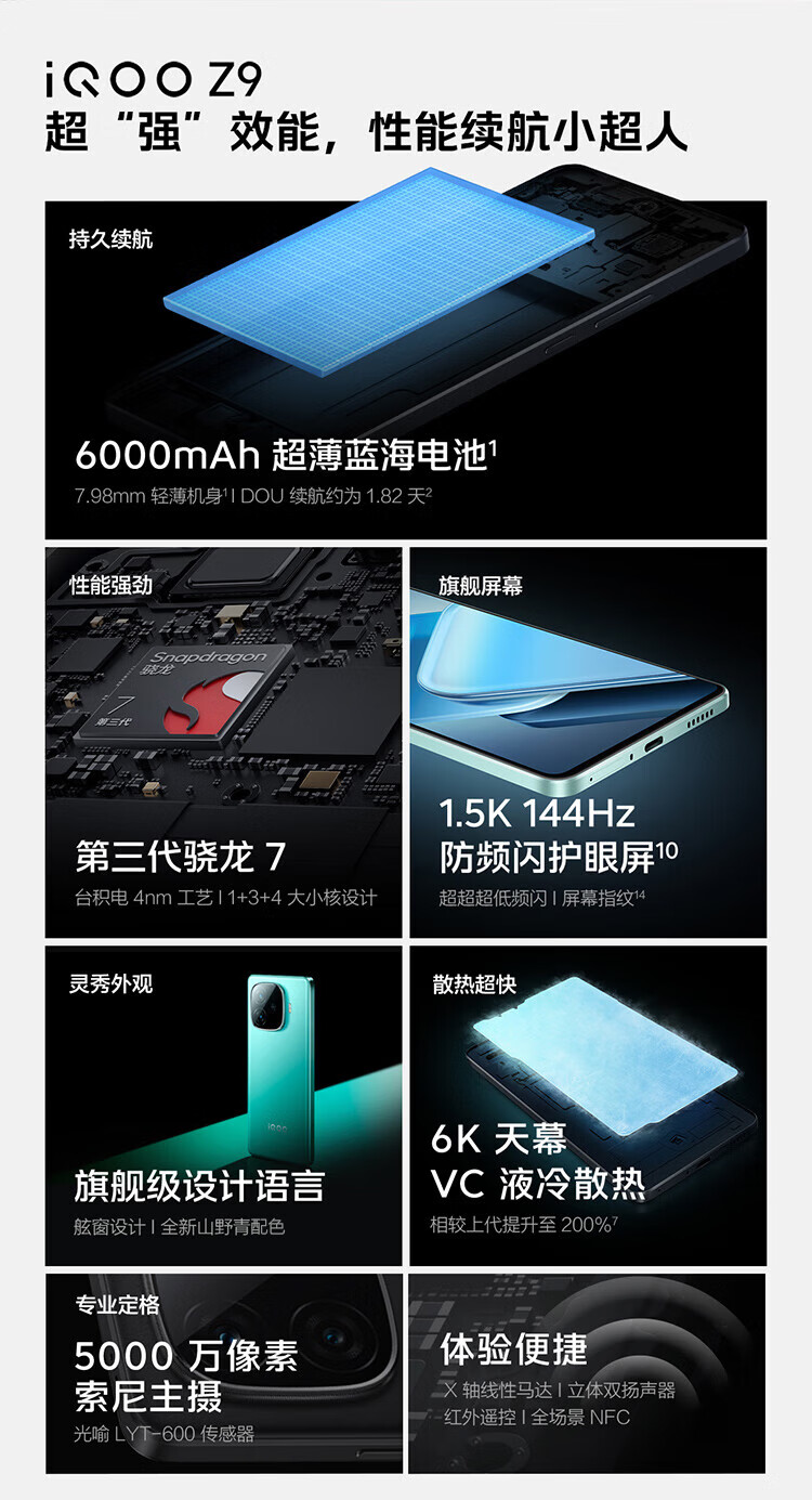 Vivo iQOO Z9 National Subsidy 8GB+256GB Starburst White 6000mAh Ultra-Thin Blue Ocean Battery Third Generation Snapdragon 7 Gaming Phone
