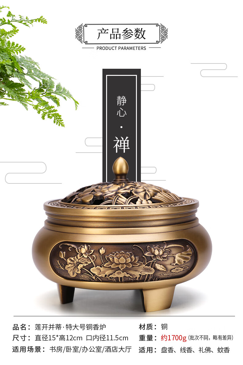 Xin Bailu [extra large copper incense burner] + 160 aristocratic four flavor combinations in the incense plate + copper incense insert Extra large pure copper incense burner