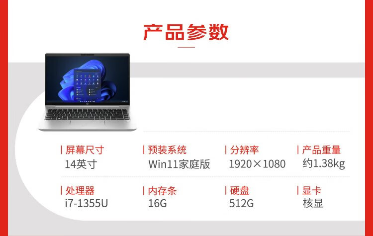 Mietservice für HP Notebook 440G10/i7-1355U/16G/512G SSD/Core-Display/Win11 Home Edition (monatliche Miete/3 Jahre Laufzeit).