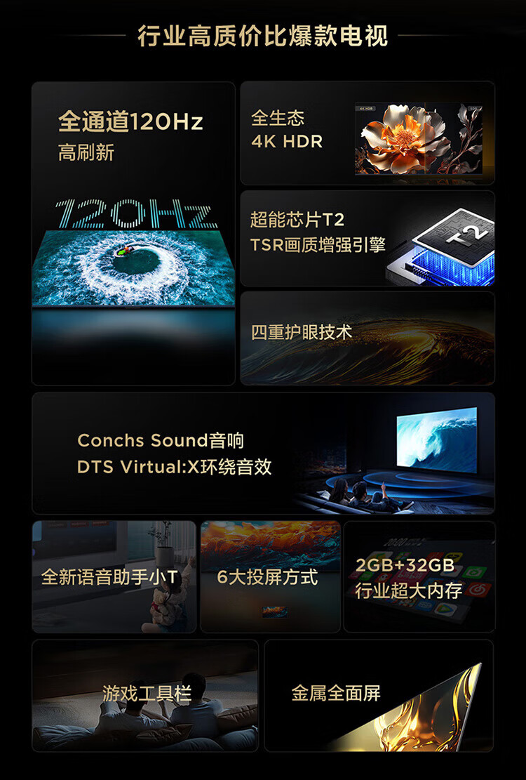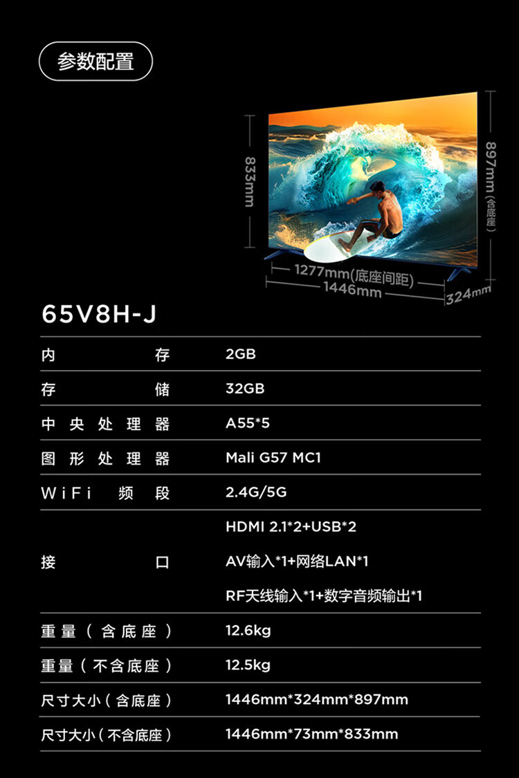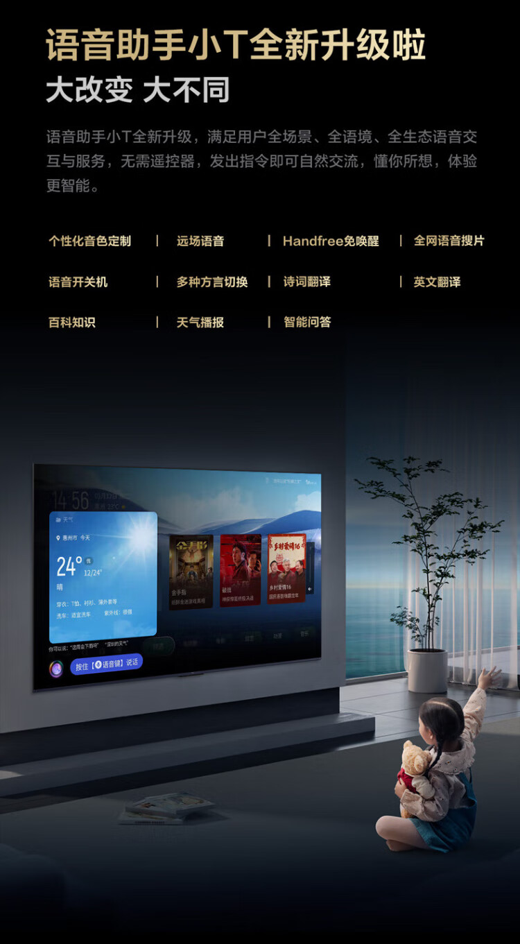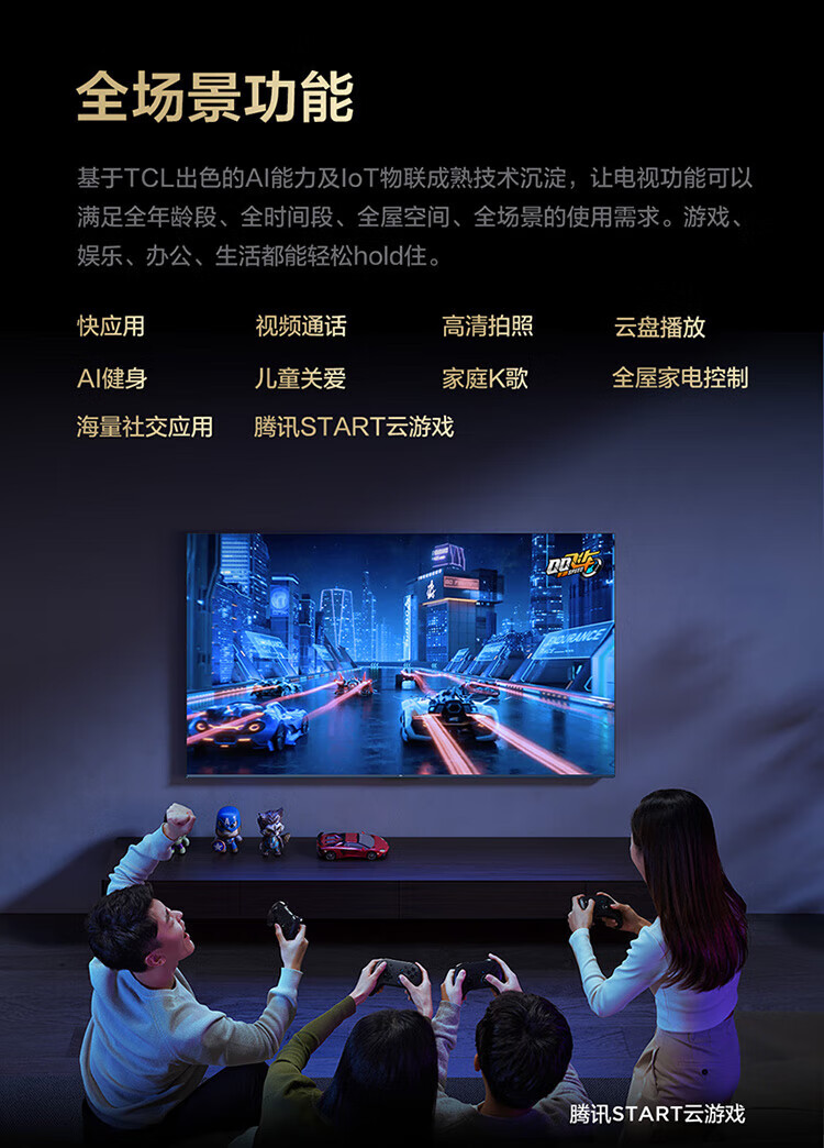 TCL TV 65V8H-J 65 inches 120Hz MEMC anti-shake 2+32GB large memory eye protection 4K high definition trade-in 15% national subsidy for home appliances