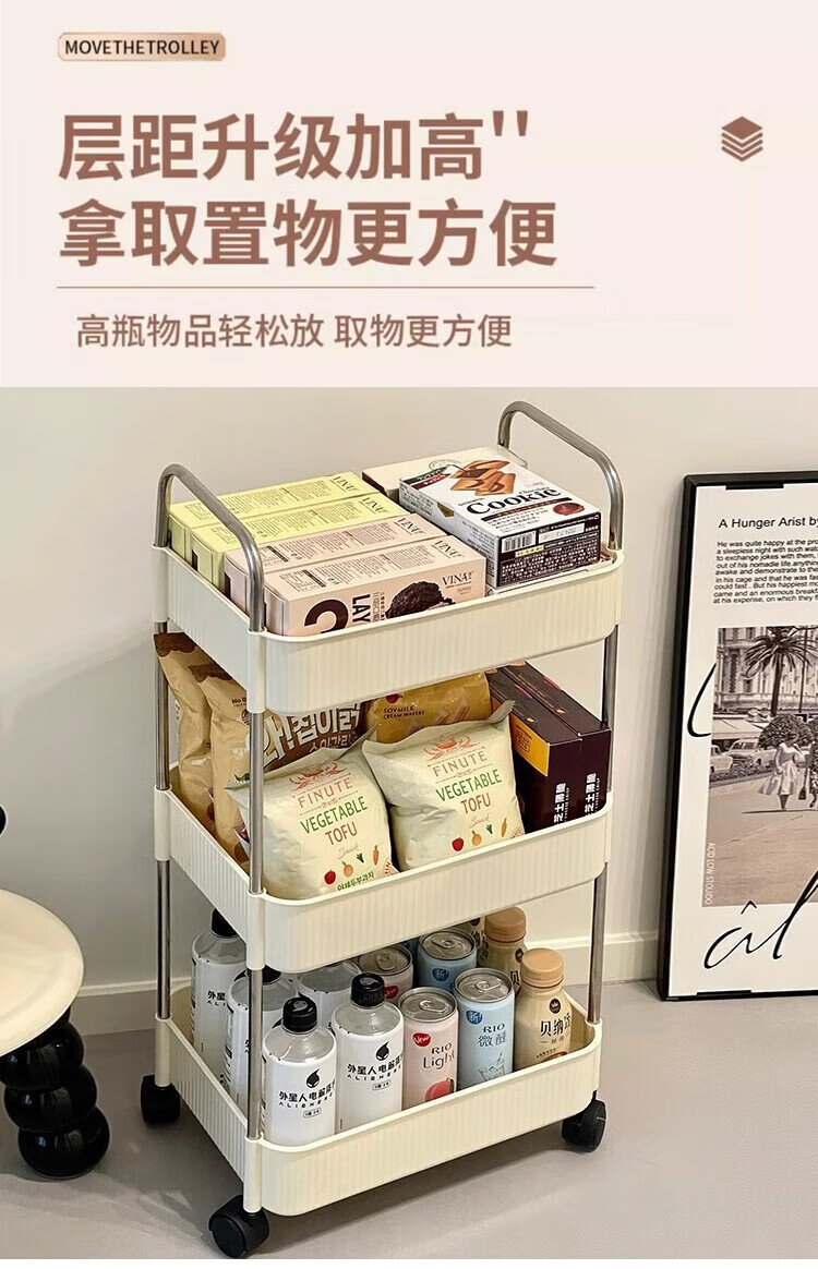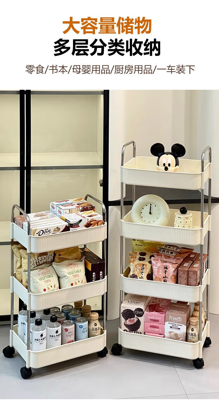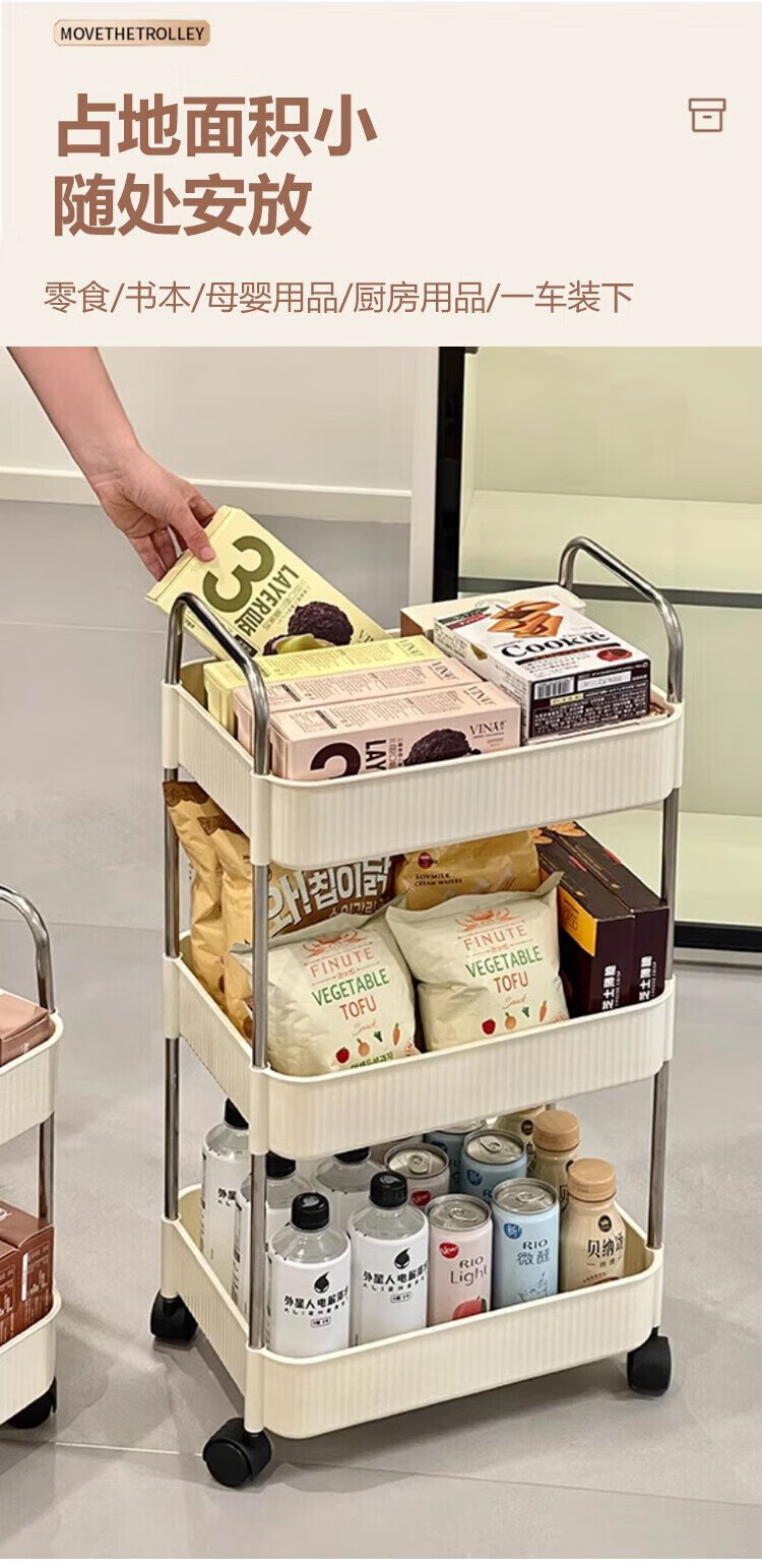 Zhuobo kitchen rack floor-standing mobile snack rack living room storage rack bathroom storage rack SJ12 white three-layer