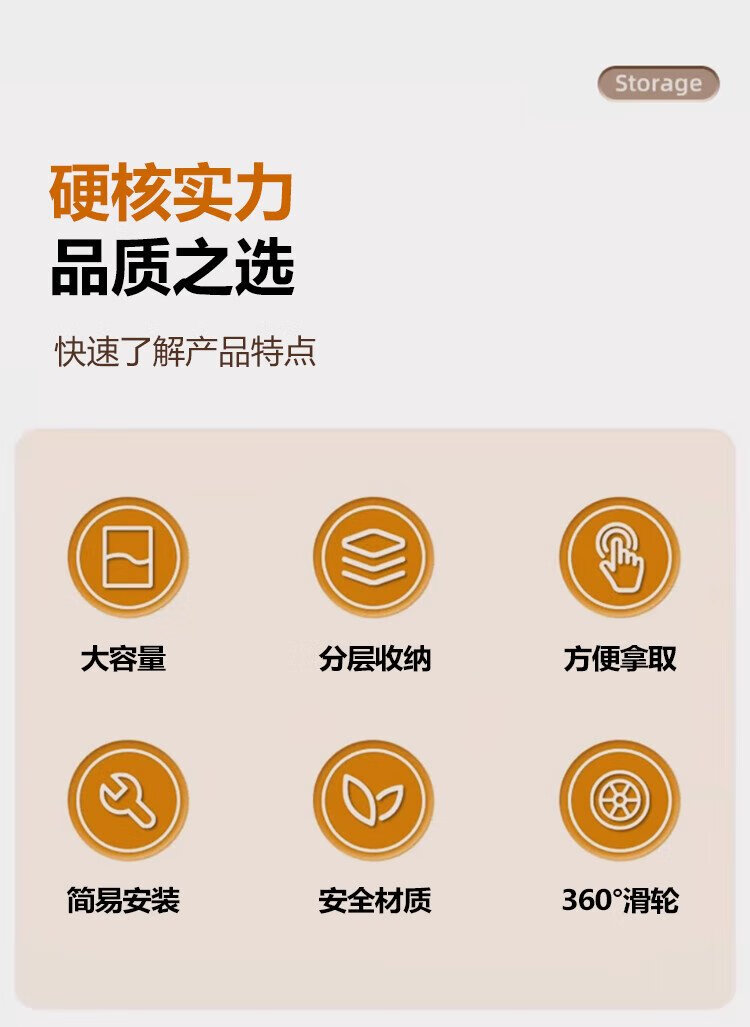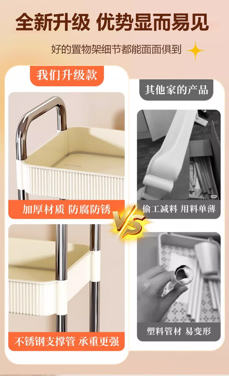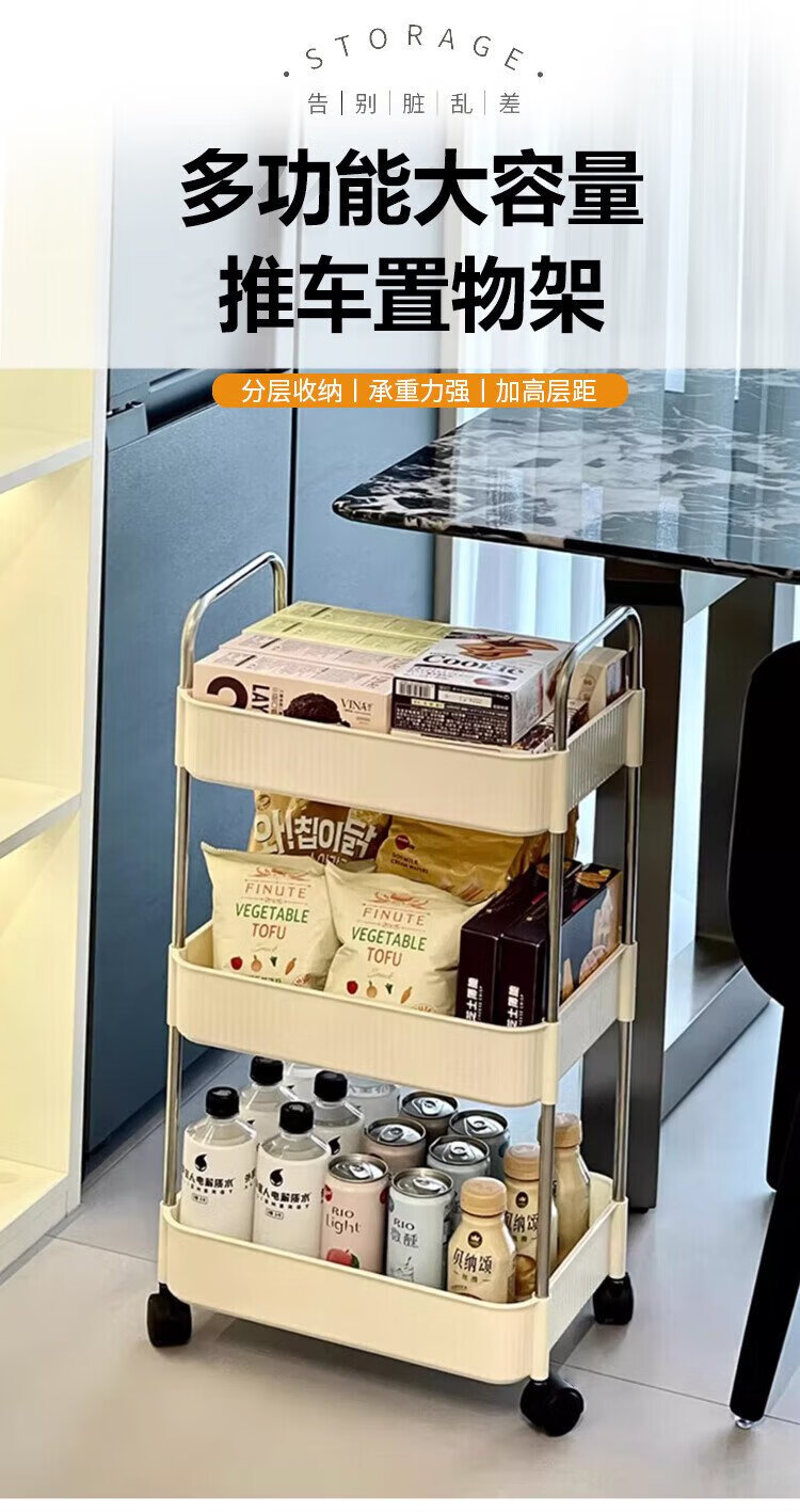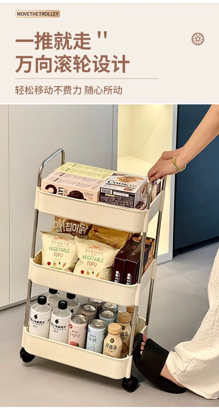 Zhuobo kitchen rack floor-standing mobile snack rack living room storage rack bathroom storage rack SJ12 white three-layer