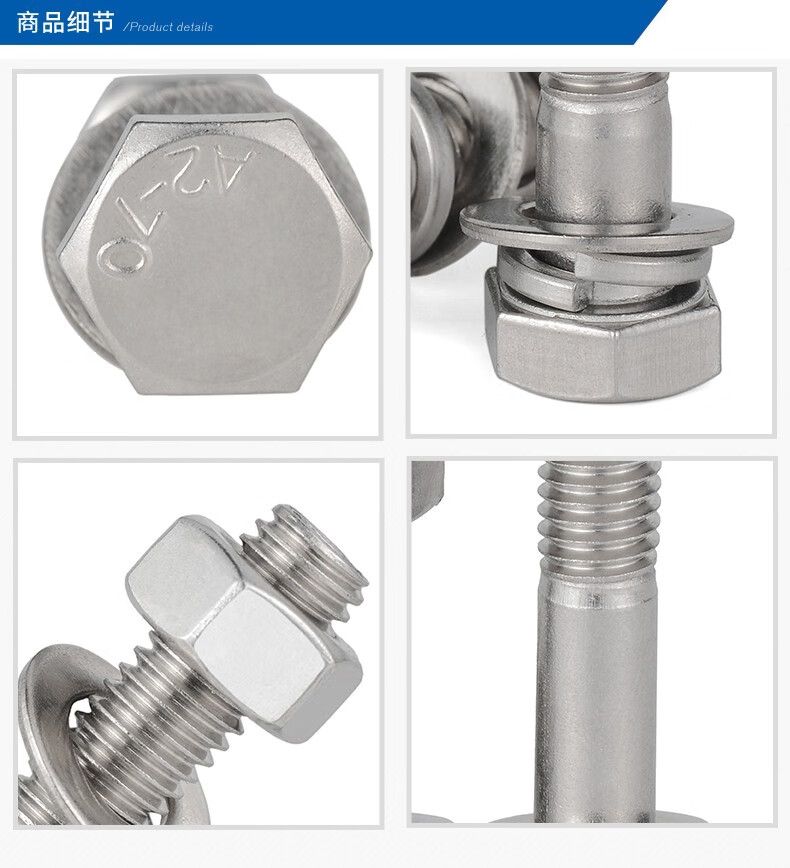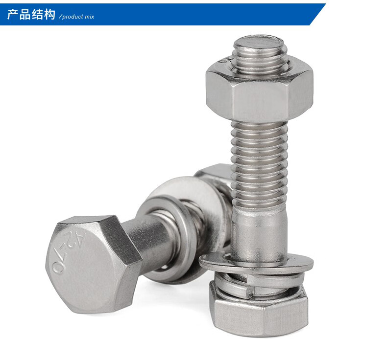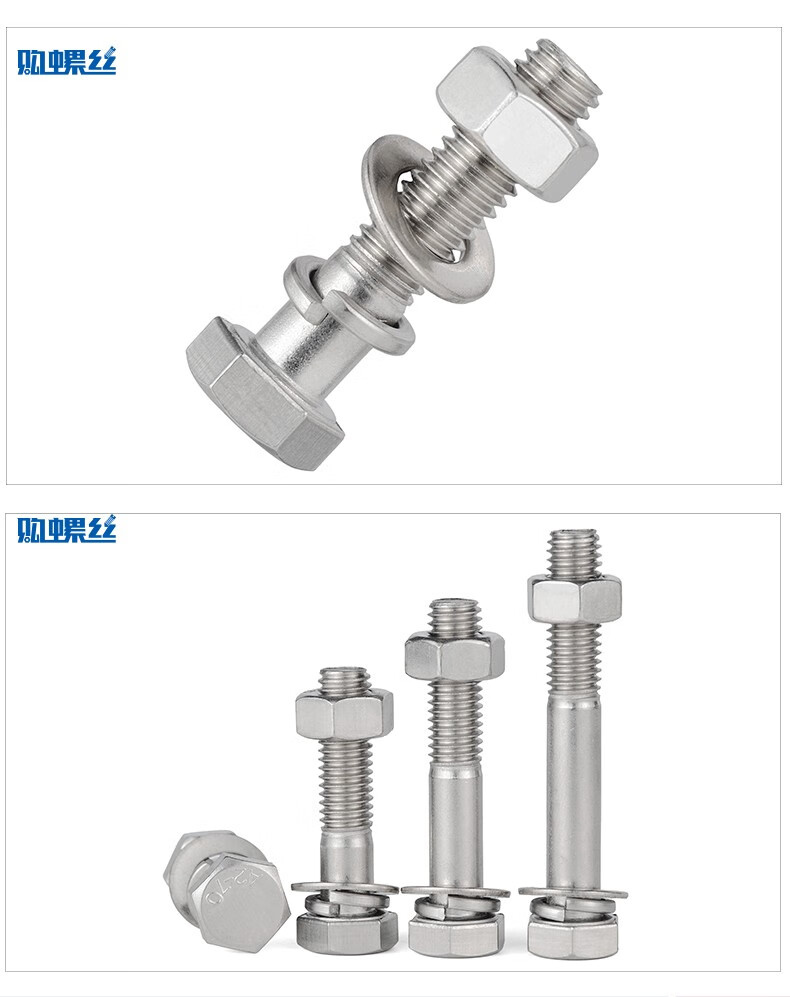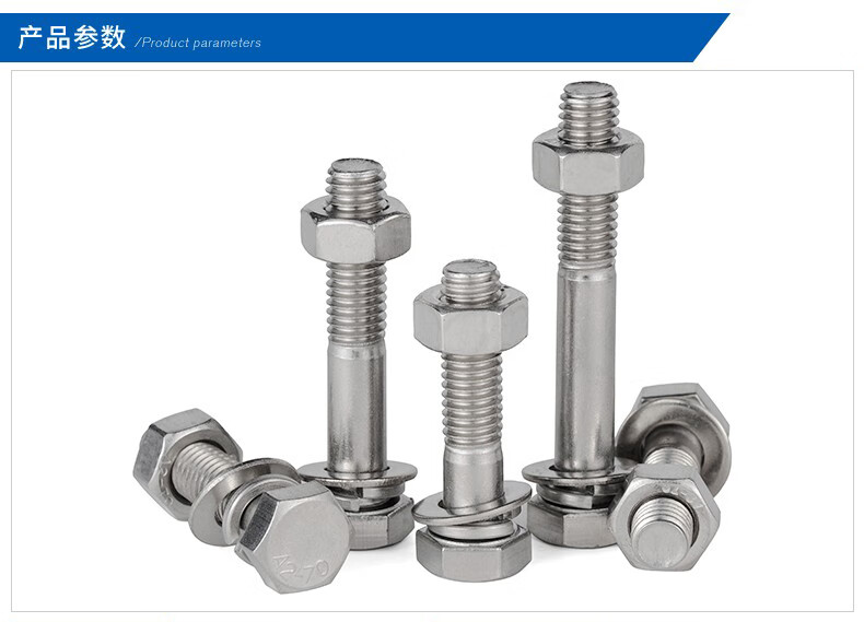 Wanji Tongrun Metric hexagonal head half-thread bolt flat washer spring washer nut combination ISO 4017 M12-1.75*70 stainless steel A2-70 passivation treatment 40 sets/pack