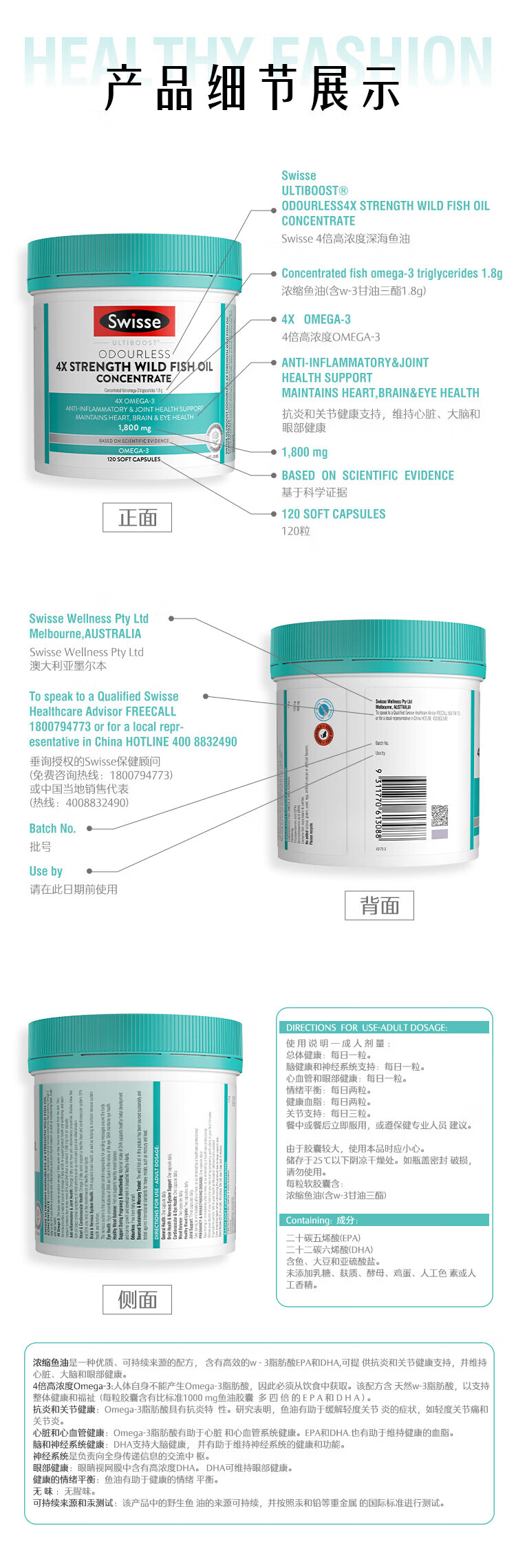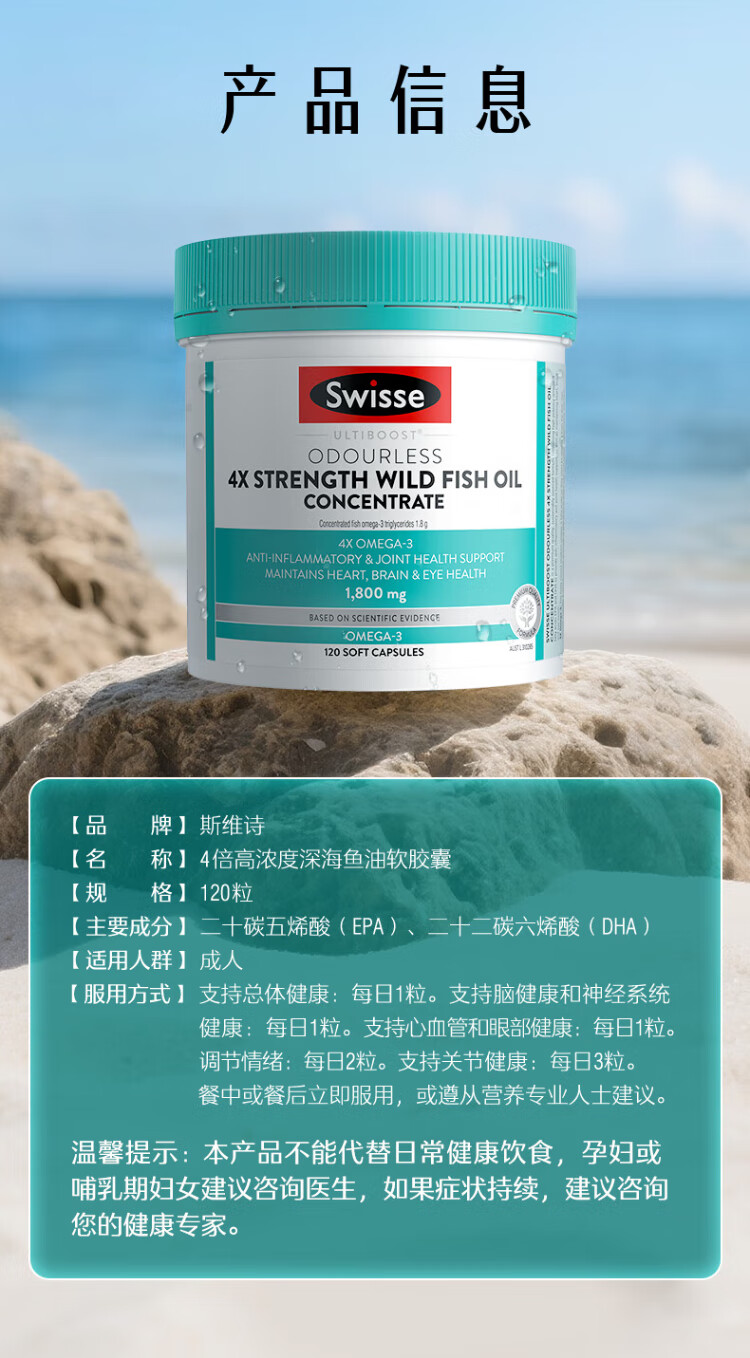 Swisse Swisse 4 times high concentration deep sea fish oil capsules 1800mg 240 capsules omega3DHA+EPA