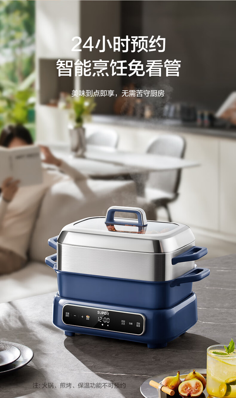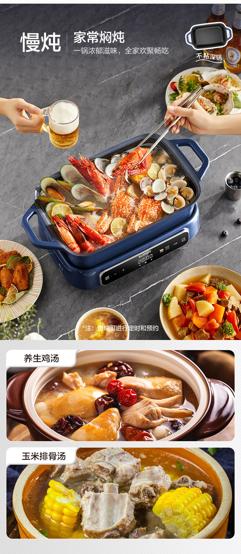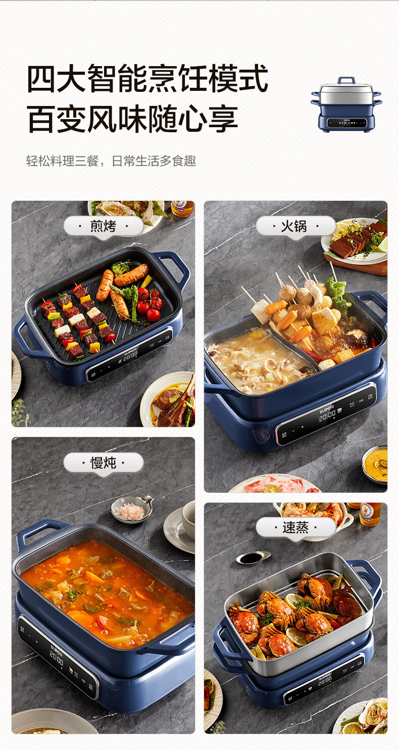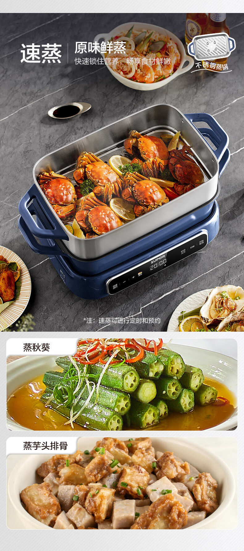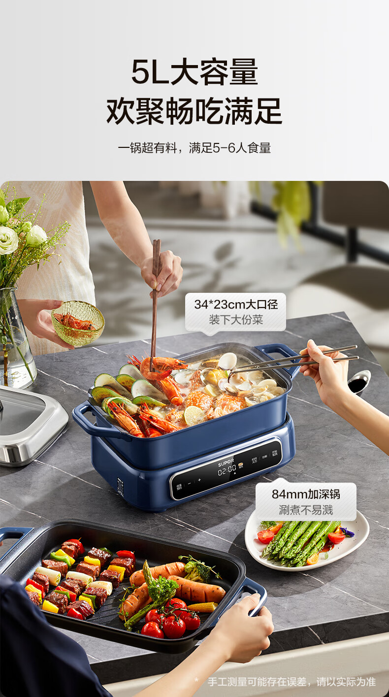 SUPOR household multifunctional meat-shabu-grilled fish barbecue pot smart electric steamer electric cooking pot electric hot pot multi-purpose split non-stick cooking pot electric hot pot H50FC983A