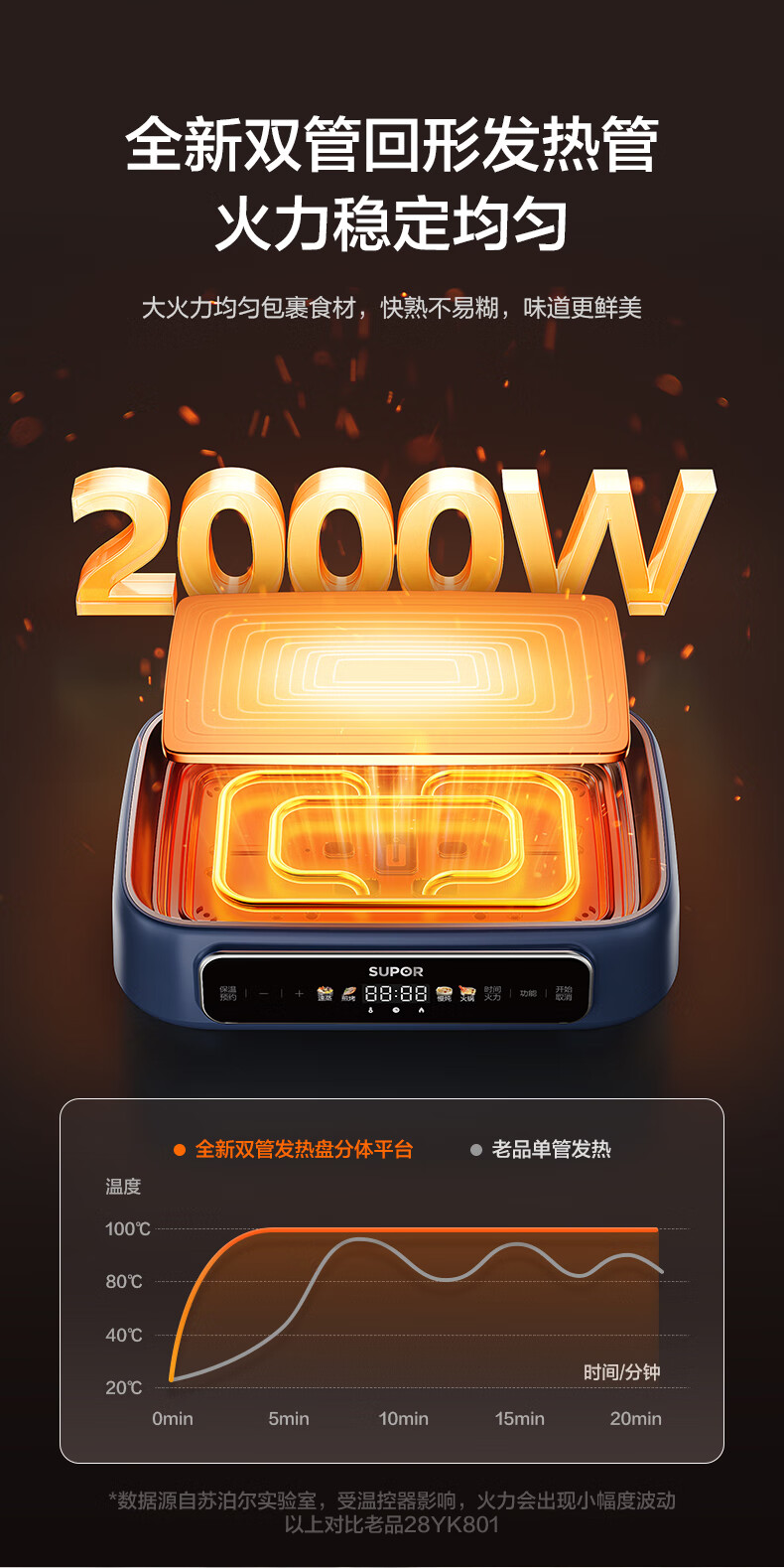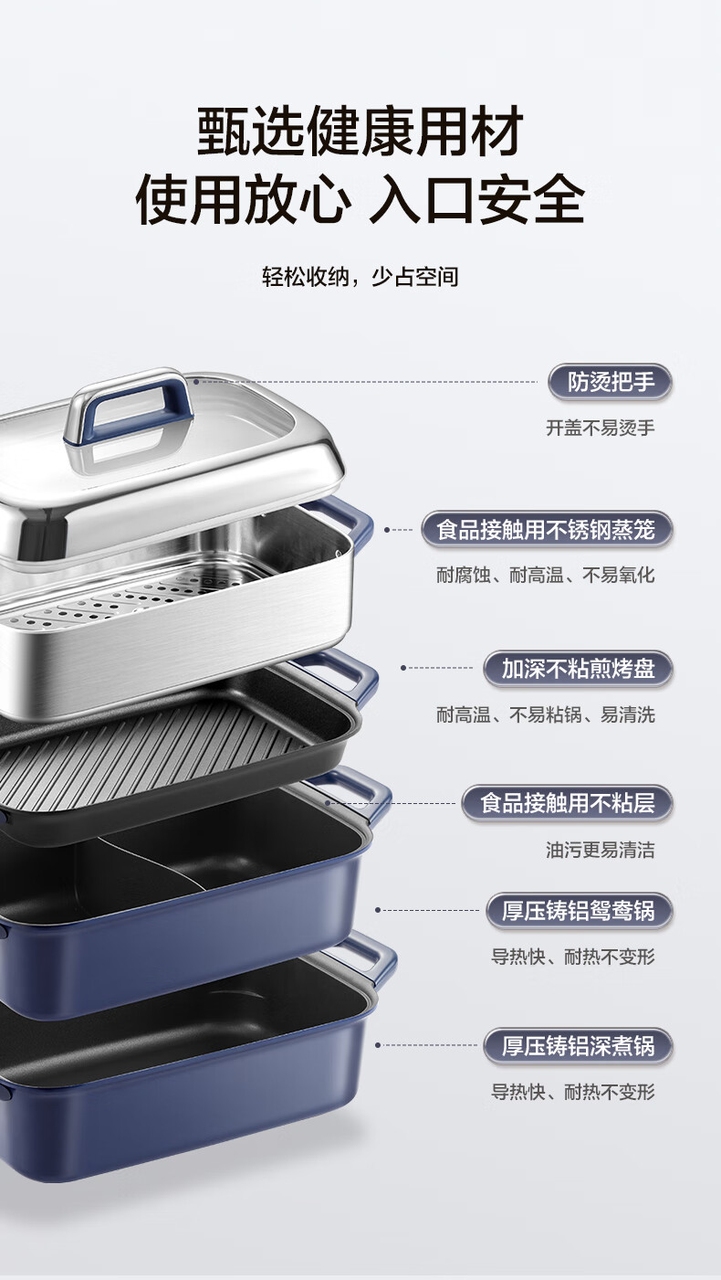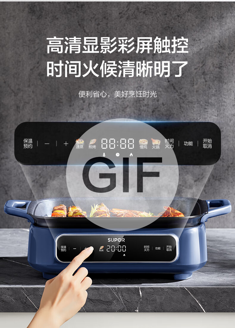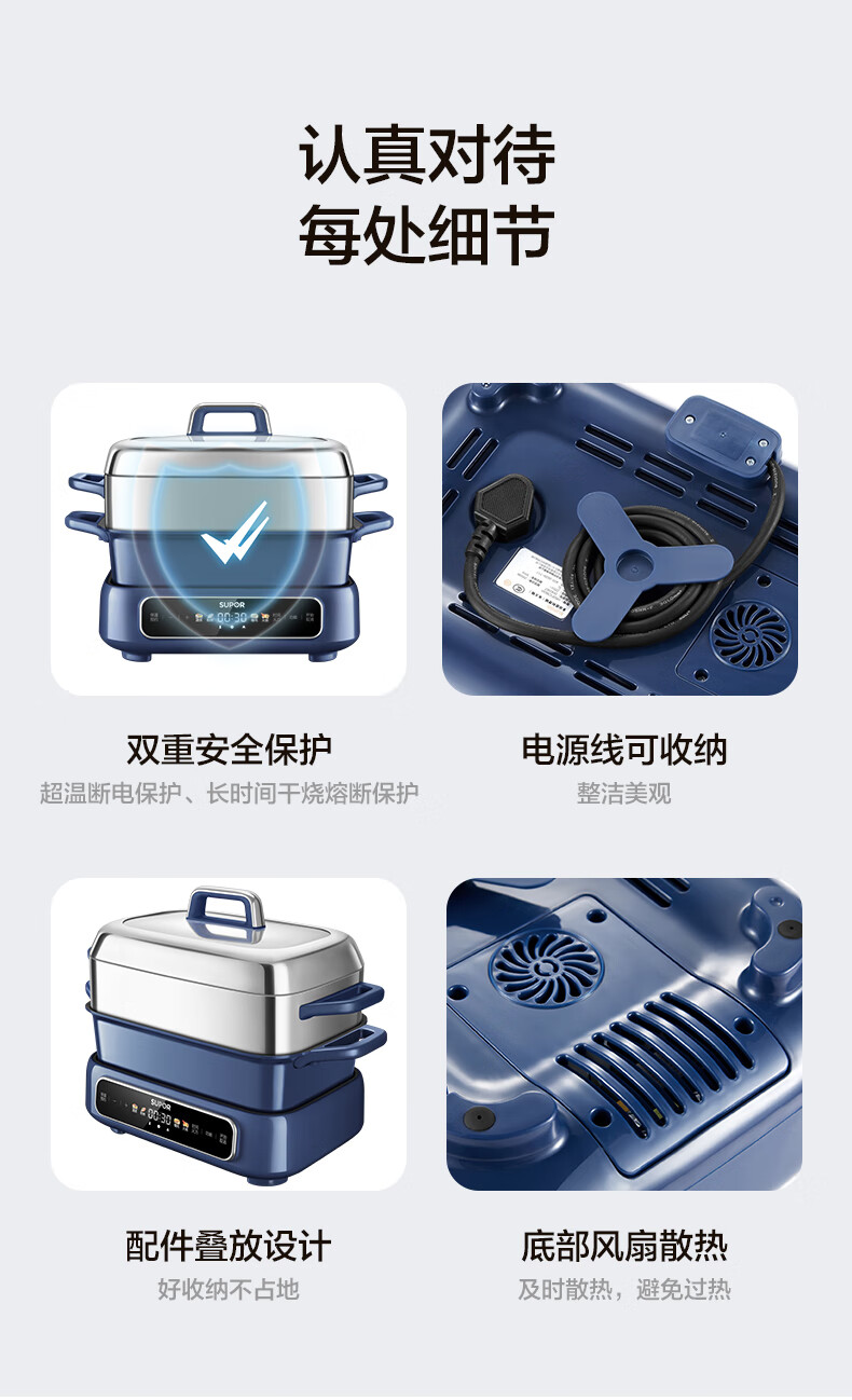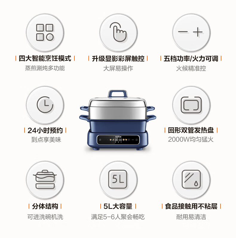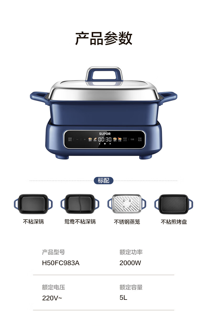 SUPOR household multifunctional meat-shabu-grilled fish barbecue pot smart electric steamer electric cooking pot electric hot pot multi-purpose split non-stick cooking pot electric hot pot H50FC983A