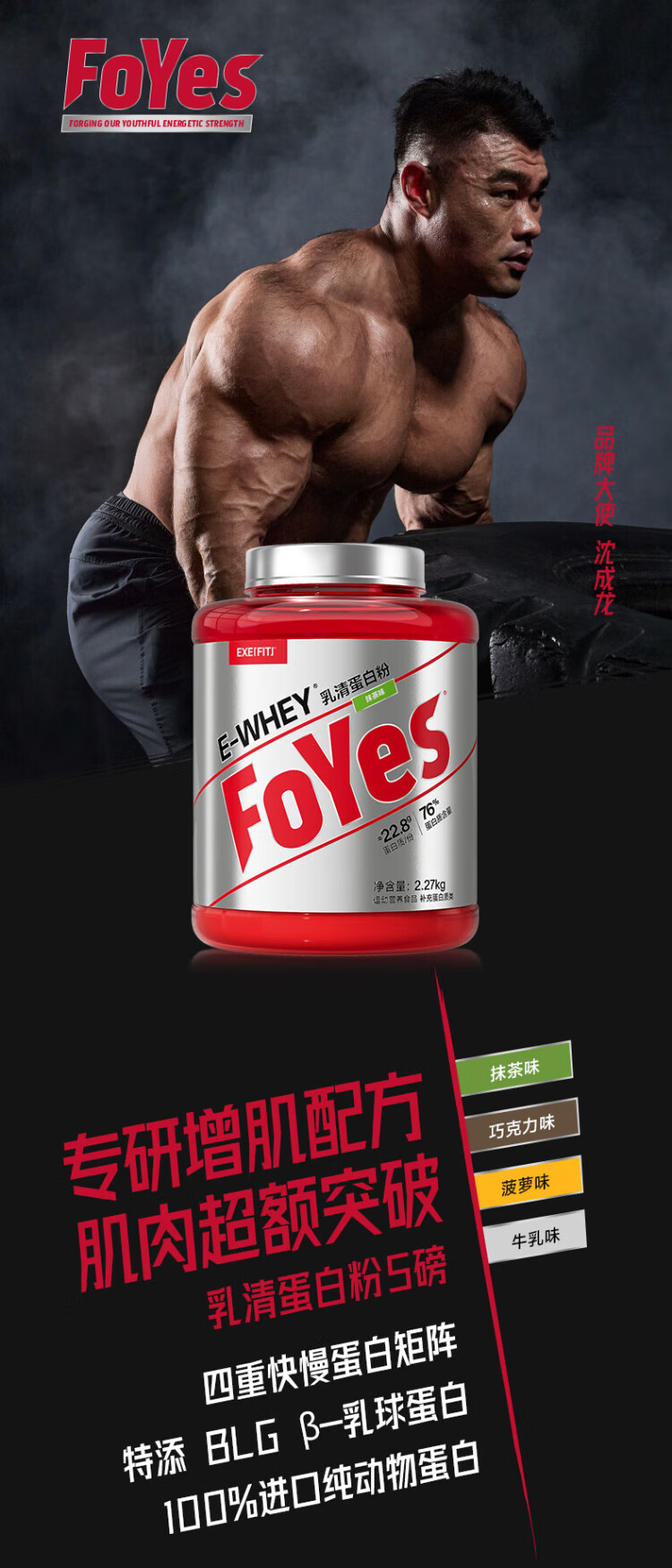 FoYes fast-growing whey protein powder for muscle building and fitness, high protein containing separated men's and women's sports shaping 5 pounds of milk flavor