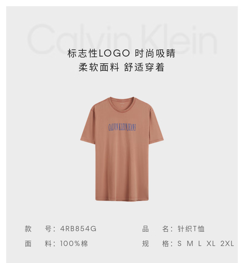 Calvin KleinJeans25 summer men's casual trend ck letter print solid color cotton short-sleeved T-shirt 4RB854G