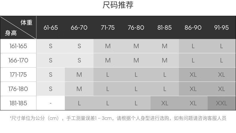 China (cm) 165 / 88-90 170 / 96-98 175 / 108-110 180 / 118-122 185 / 126-130