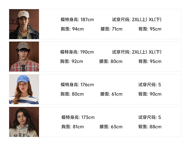 China (cm) 160-165/84-86 165-170 / 88-90 167-172 / 92-96 168-173 / 98-102 170-176 / 106-110