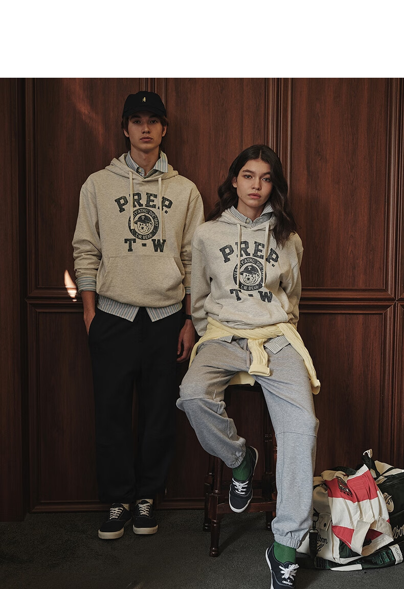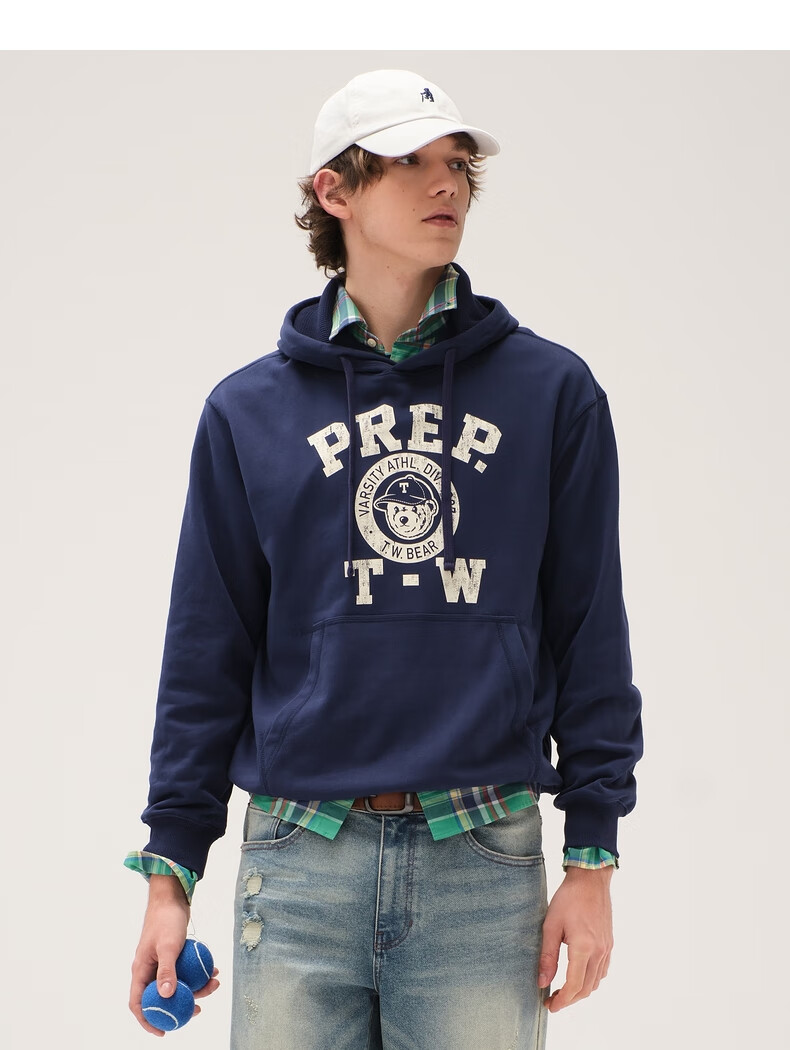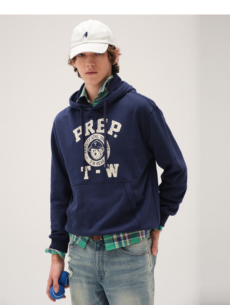 Teenie Weenie Bear Men's Hooded Sweatshirt 2025 Spring New American Fashion Loose Casual Top