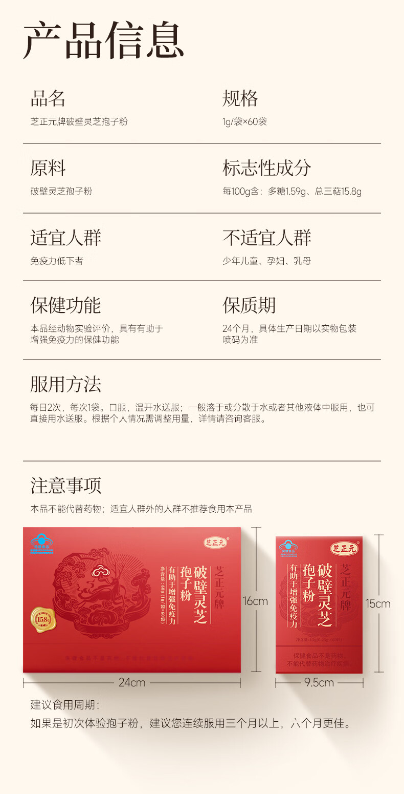 Zhizhengyuan Broken Ganoderma Spore Powder Monthly Gift Box 60 Bags Triterpenes 15.8% Give Parents, Elders and Elderly Gifts to Enhance Immunity