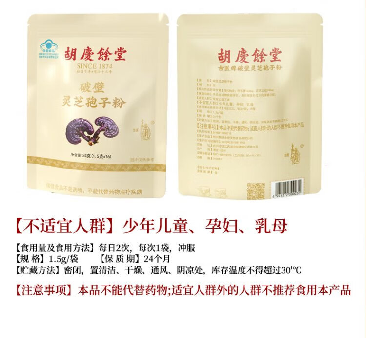 Broken Ganoderma lucidum spore powder to enhance immunity, ancient medicine nourishing health care product for middle-aged and elderly people 1.5g*16 bags