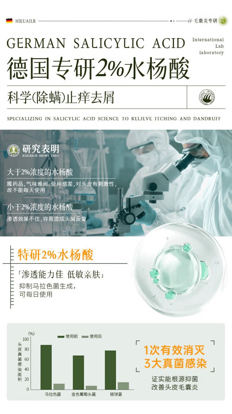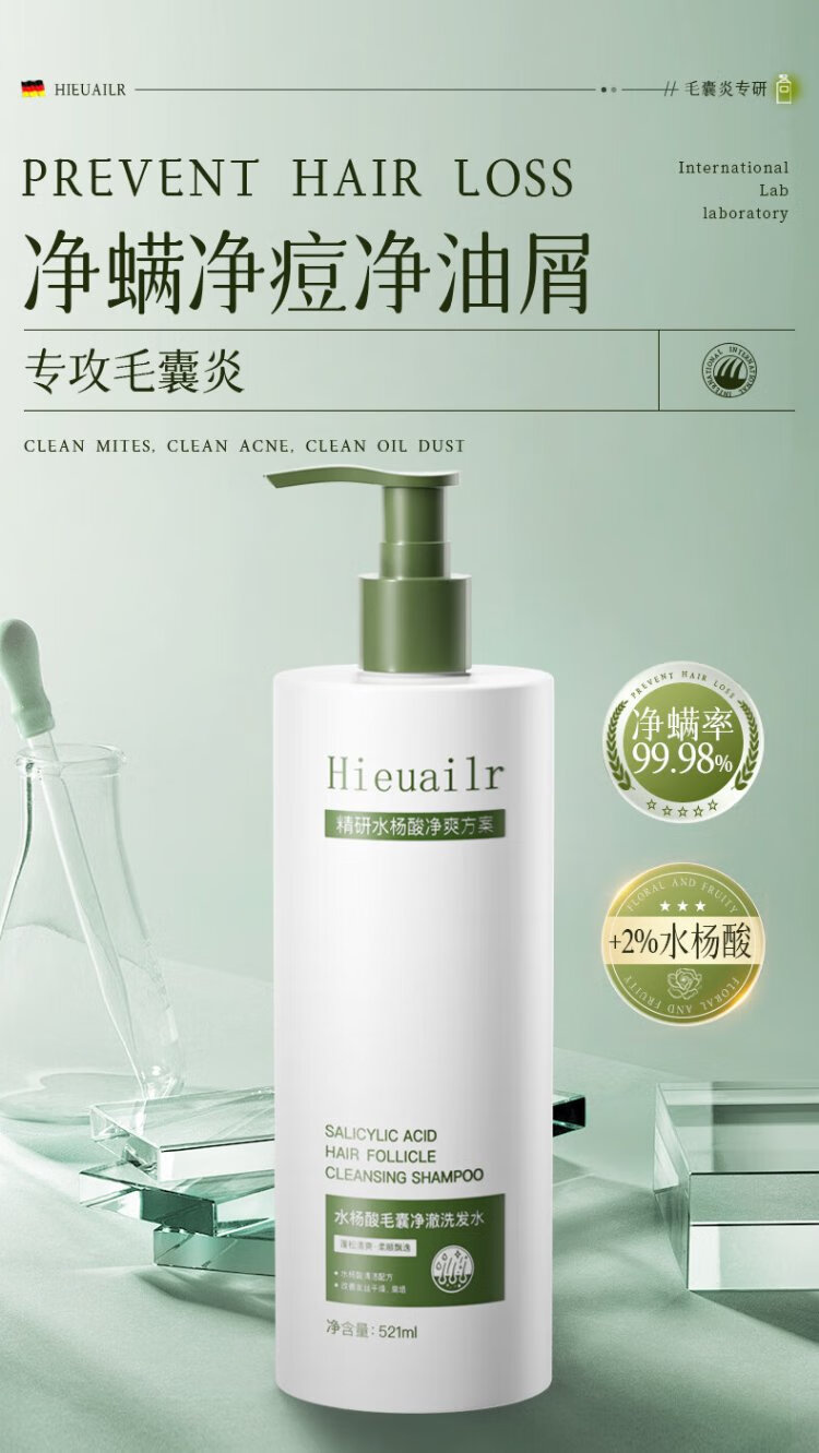 HIEUAILR шампунь для волосяных фолликулов с салициловой кислотой, против перхоти, против зуда, для контроля жирности, пушистый золотой список № 1, шампунь для удаления масла длительного действия