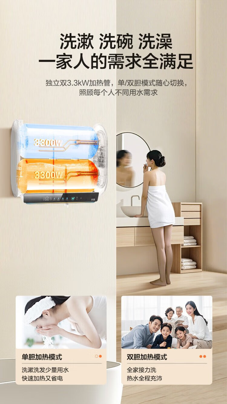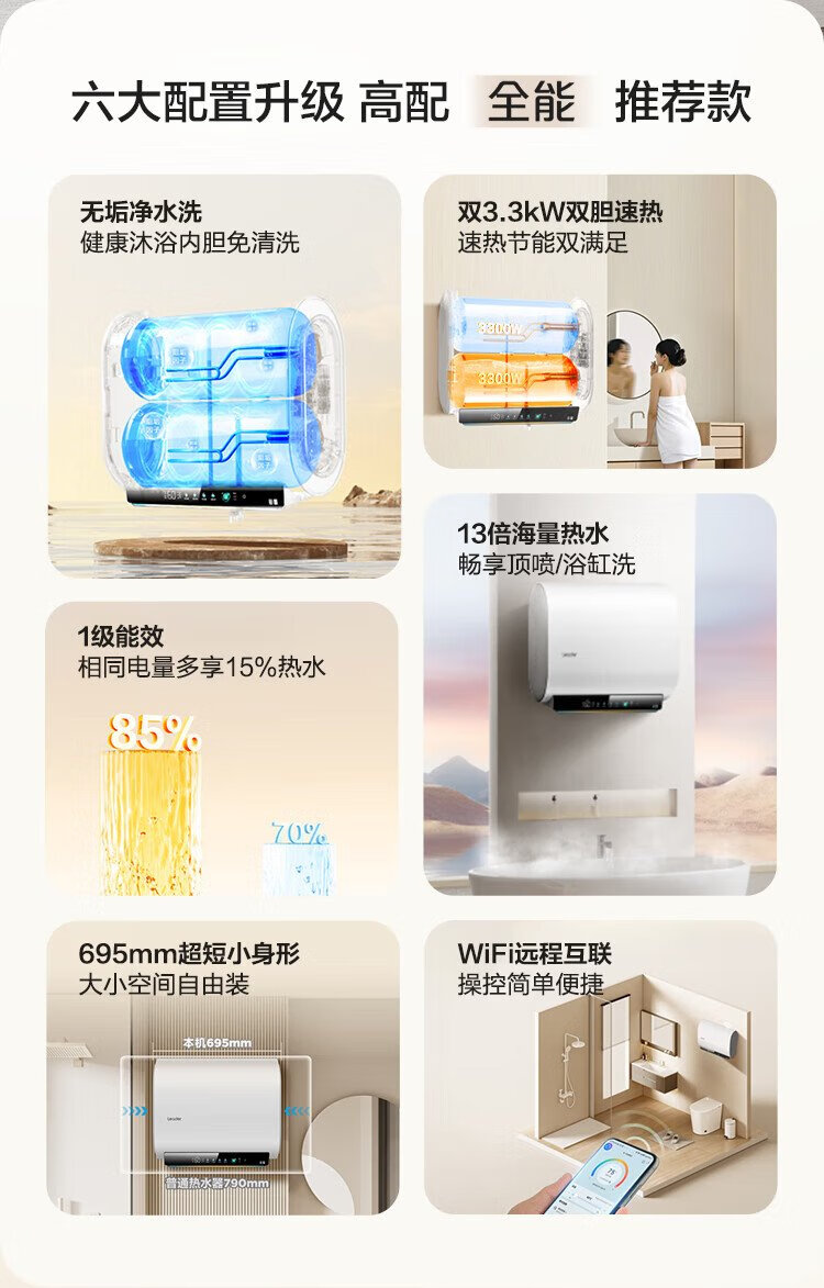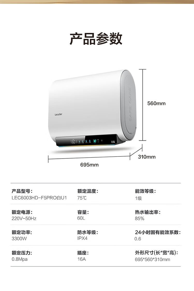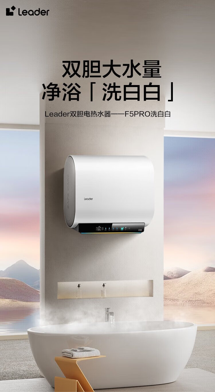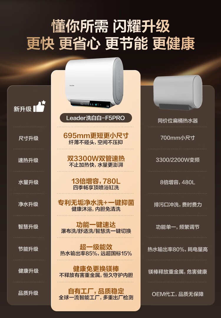 Haier produziert den 60-Liter-Doppelgallonen-Flacheimer-Elektro-Warmwasserbereiter der Commander Lazy-Serie, OCC-Tür-zu-Tür-Installation, Kalkfreiheit und Reinigung mit sauberem Wasser, 3300 W, erstklassige Energieeffizienz, nationale Subvention F5PRO