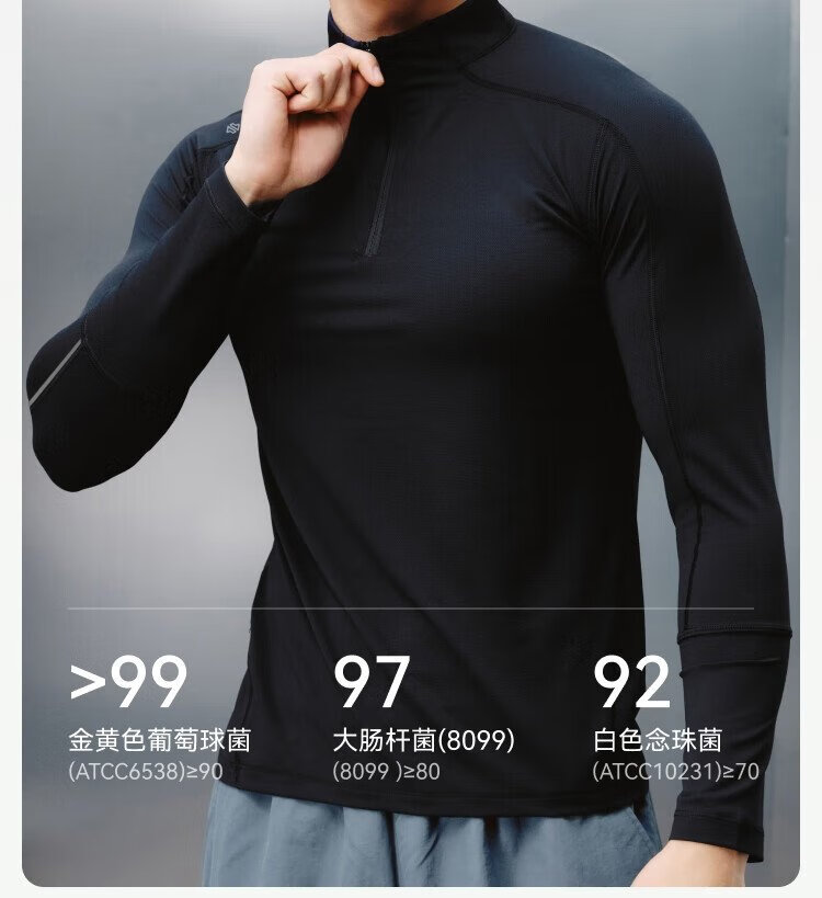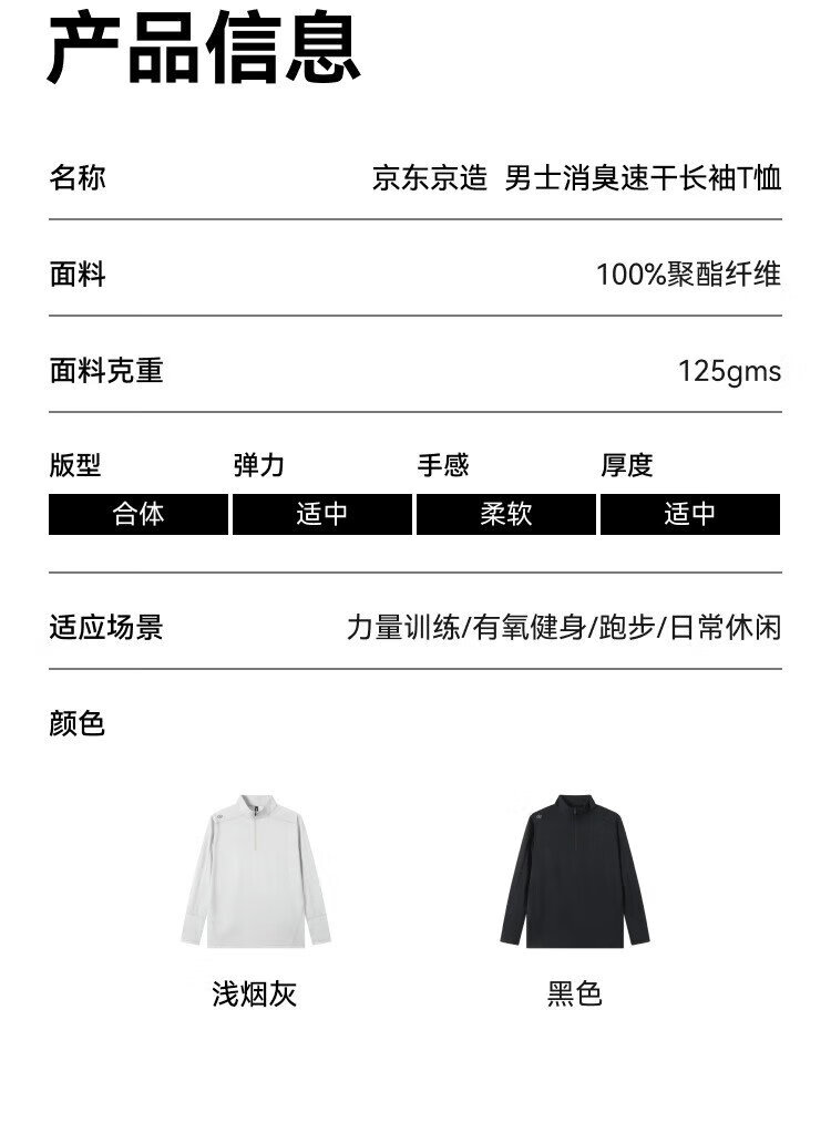 JD.com made in 25 autumn and winter men's odor removal exercise quick-drying T-shirt running and fitness outdoor anti-odor antibacterial long sleeves light smoke L