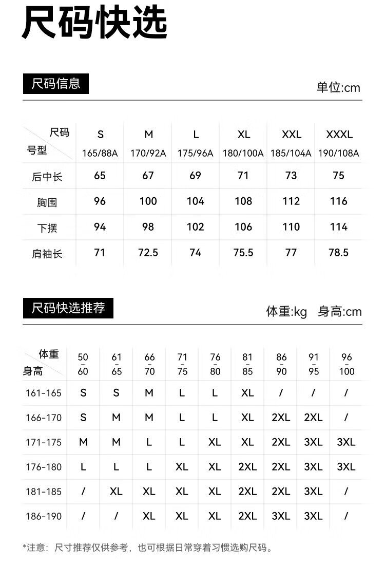 China (cm) 165 / 88-90 170 / 96-98 175 / 108-110 180 / 118-122 185 / 126-130