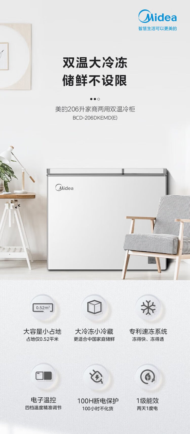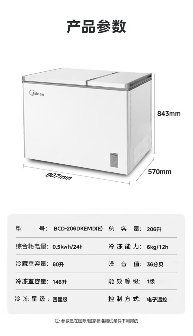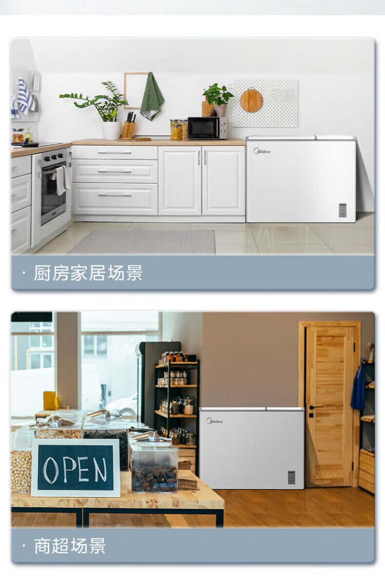 Midea Freezer BCD-206DKEMD (E) Dual Temperature Household Freezer Large Freezer Small Refrigerator Horizontal Top Door Small Refrigerator Energy-Saving Bass Freezer