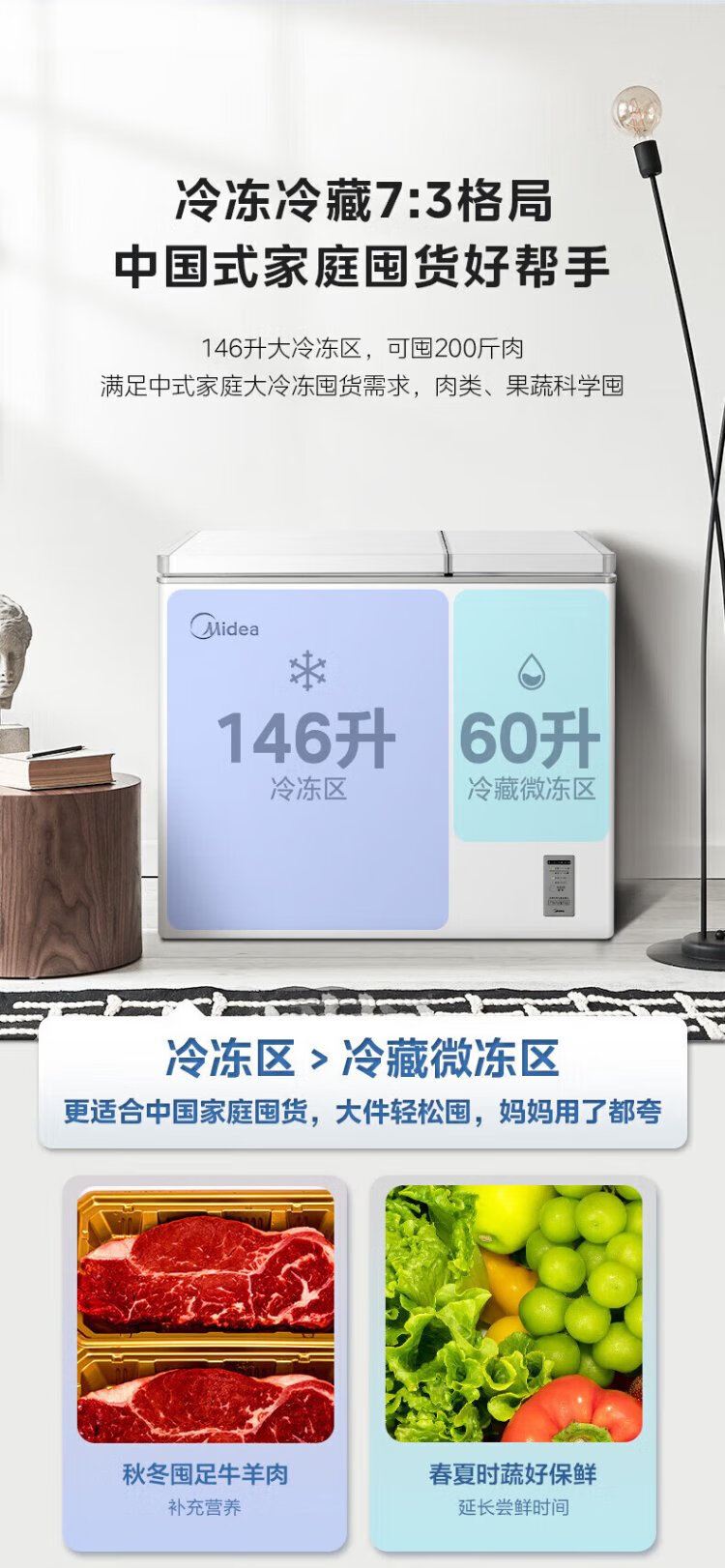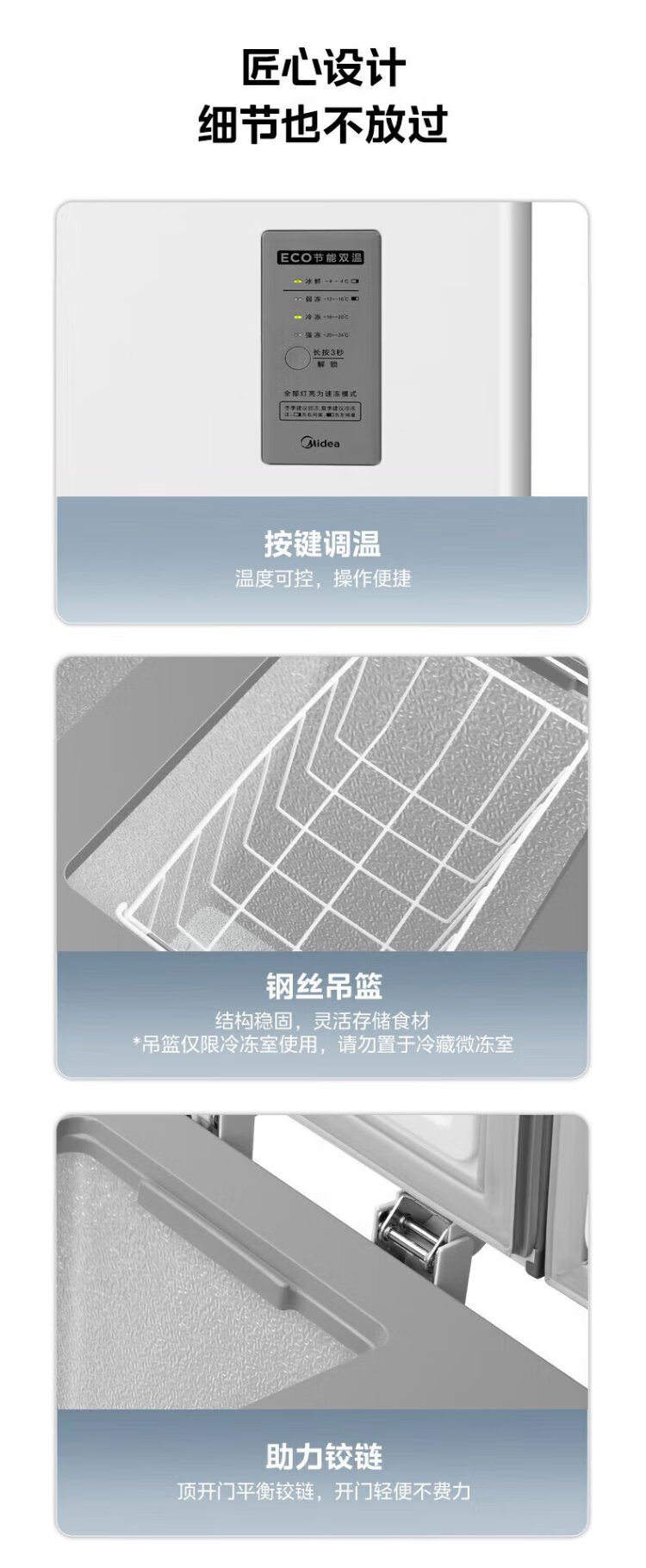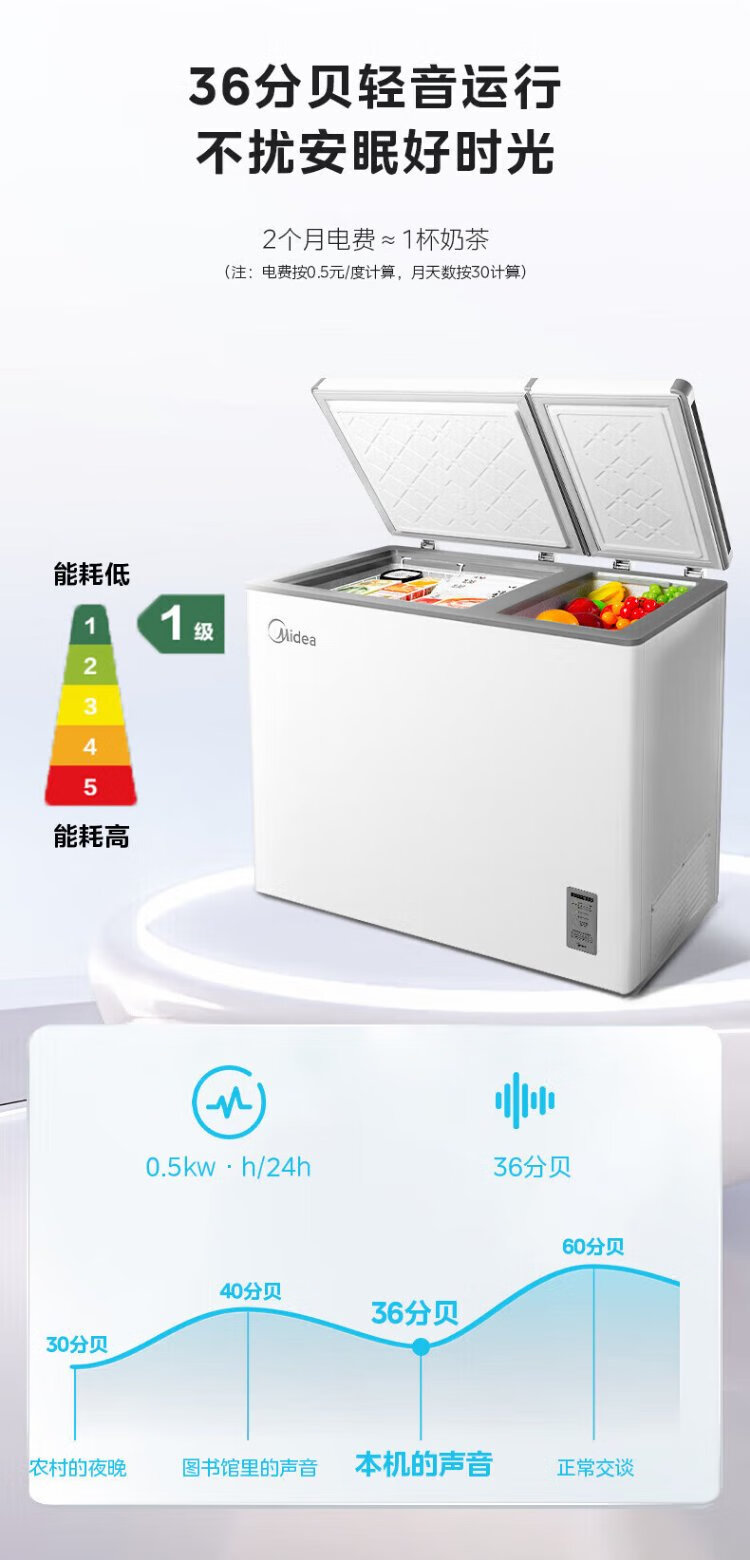 Midea Freezer BCD-206DKEMD (E) Dual Temperature Household Freezer Large Freezer Small Refrigerator Horizontal Top Door Small Refrigerator Energy-Saving Bass Freezer
