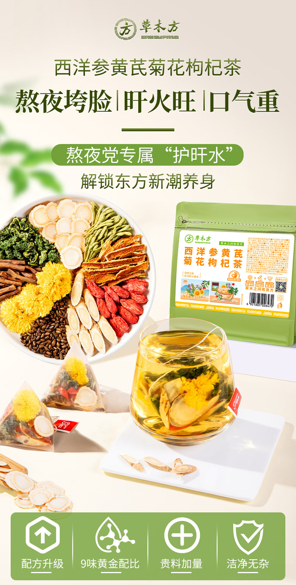 Caomu Fang American Ginseng, Astragalus, Chrysanthemum and Wolfberry Tea 210g (30 bags) Astragalus, Wolfberry, Chrysanthemum Tea and Stay Up Late Selection Healthy Tea