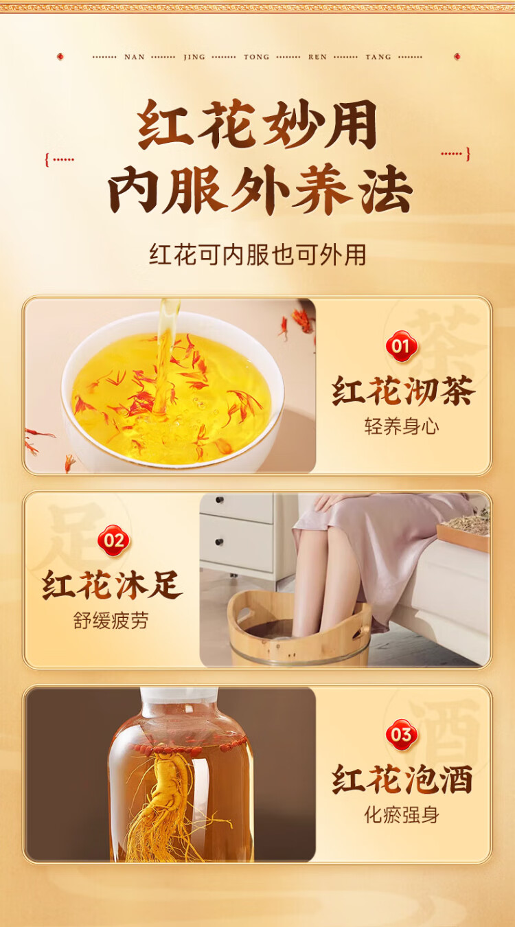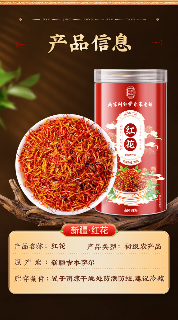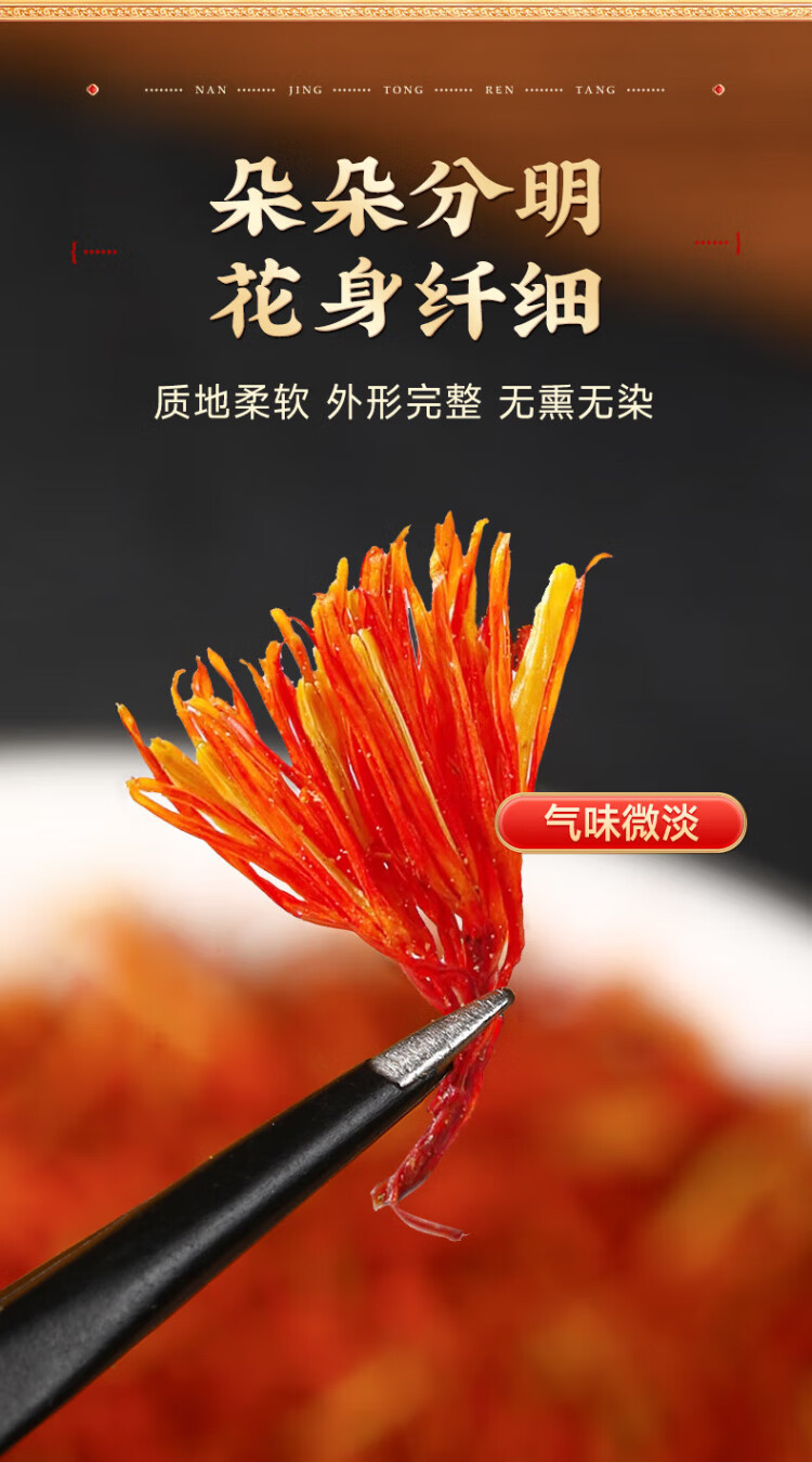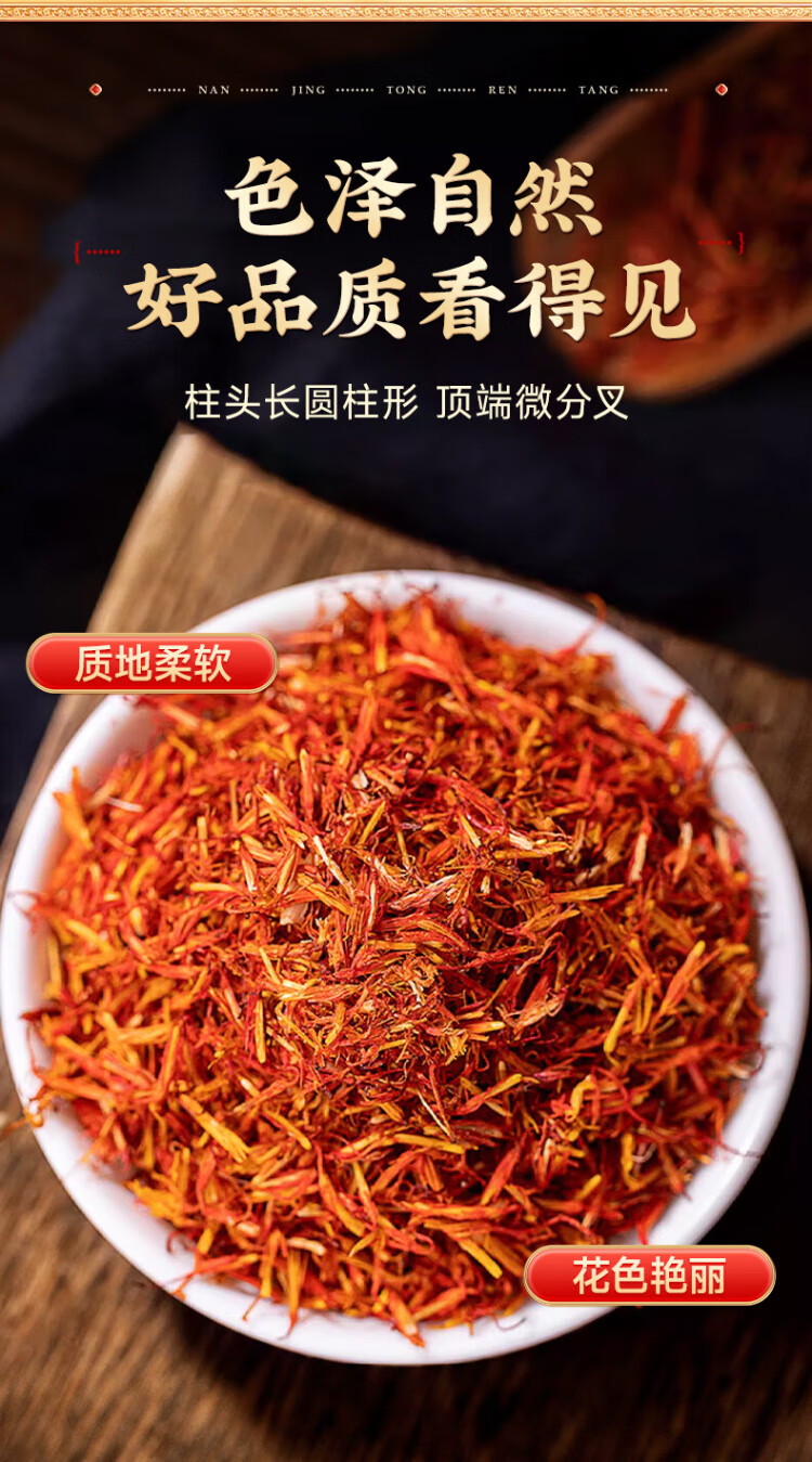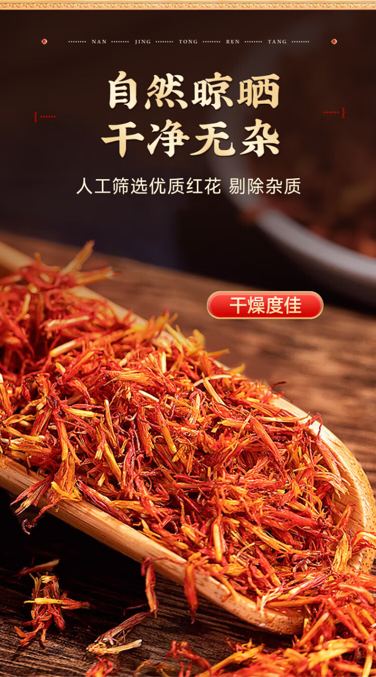 Nantong Sihai, Nanjing Tongrentang safflower, unsulfur-free safflower, selected Xinjiang grass safflower dry goods and Chinese medicinal materials, qi and blood replenishing safflower