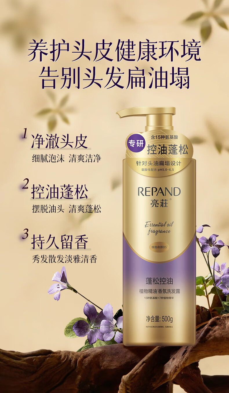 Liangzhuang Oil Control Fluffy Shampoo 500g Refreshing Oil Removal Long-lasting Fragrance Plant Essential Oil Fragrance Shampoo Popular Products